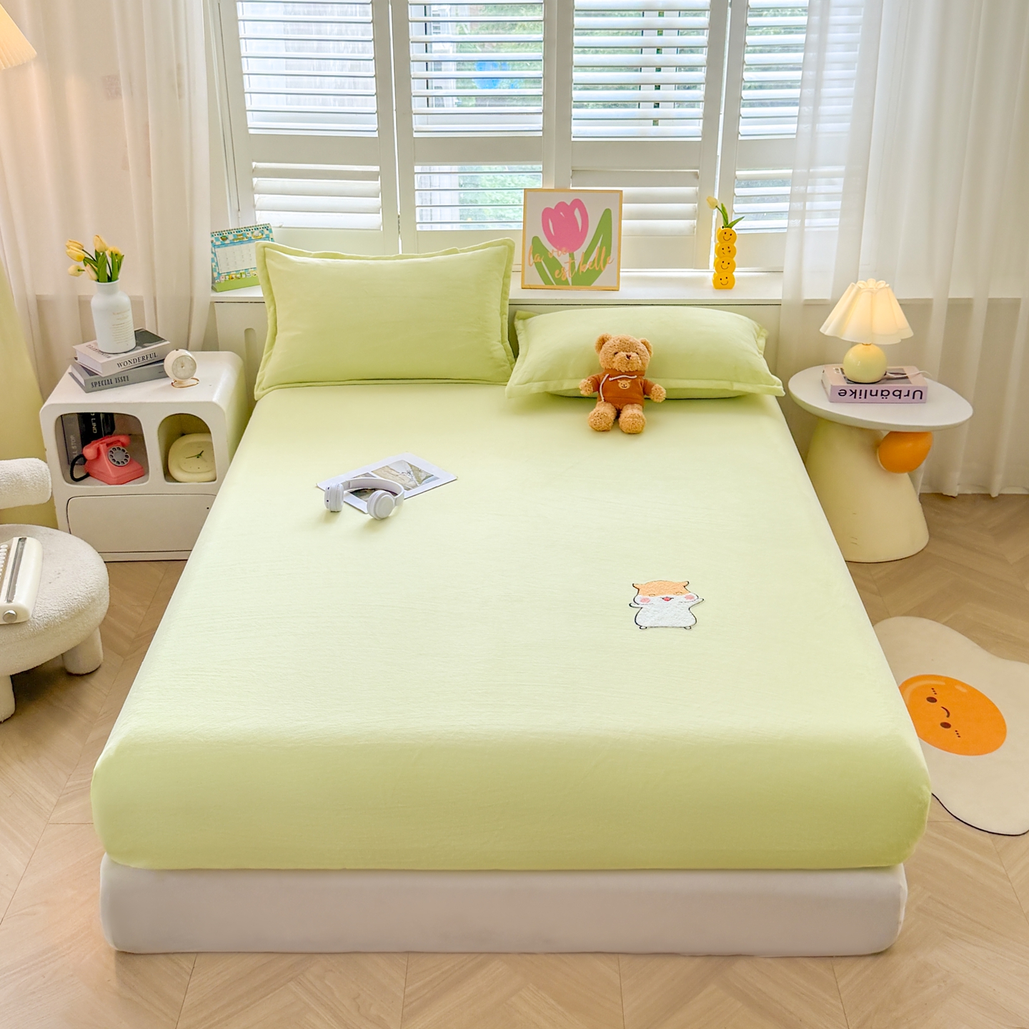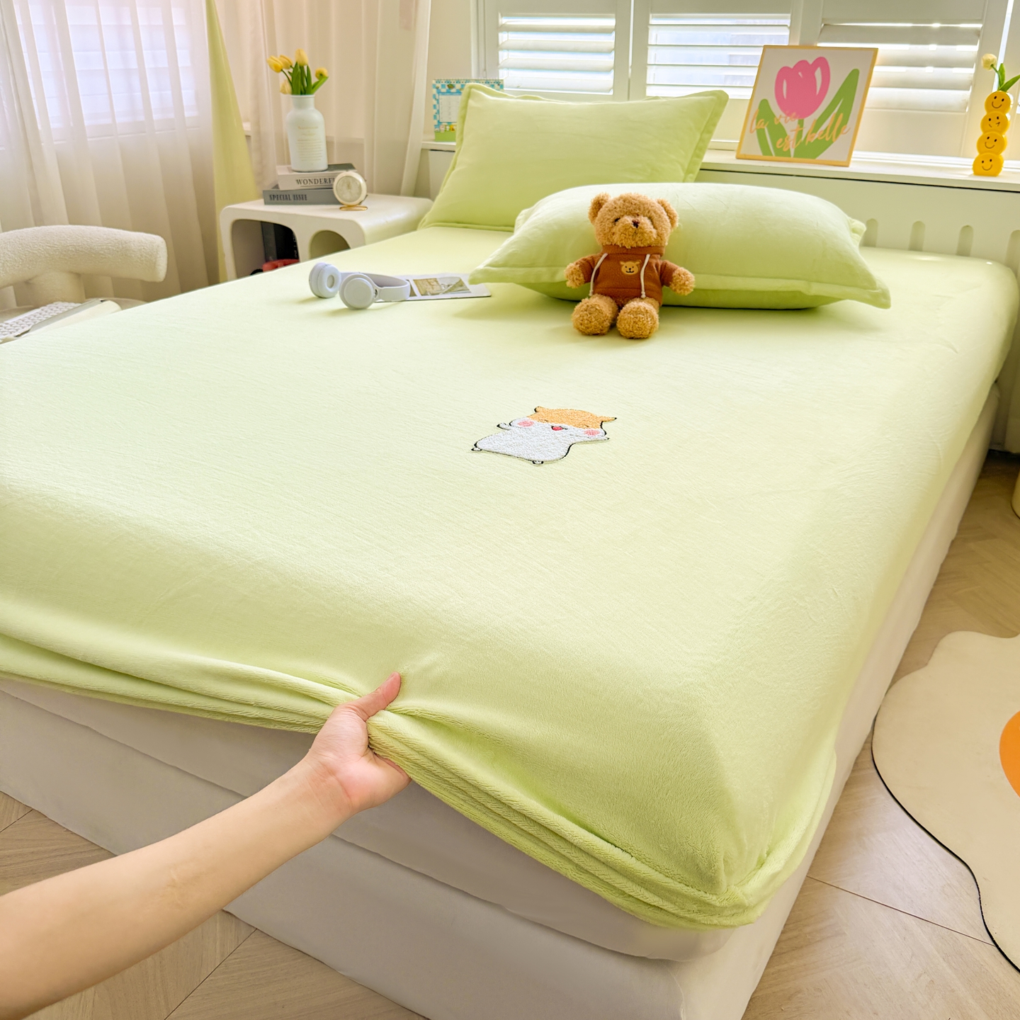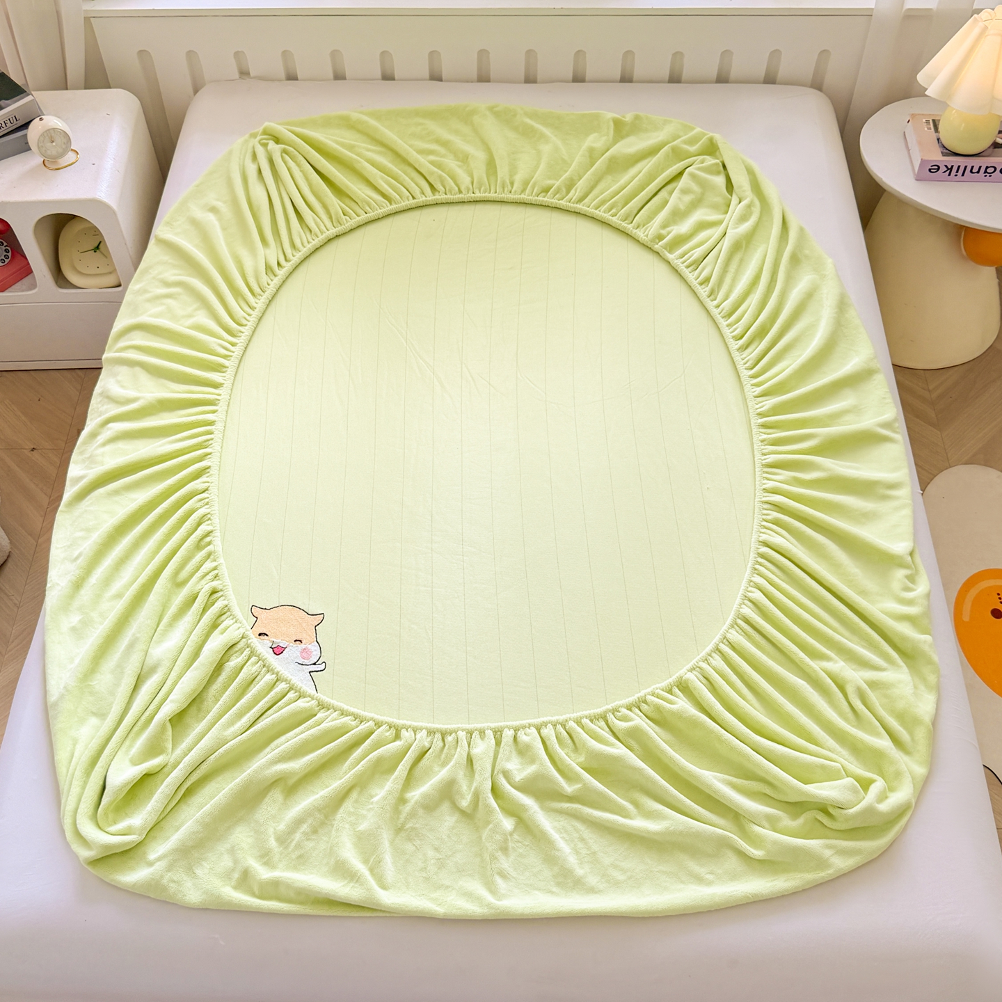 湘之帛 2025新款牛奶绒印花床笠 小松鼠-浅绿