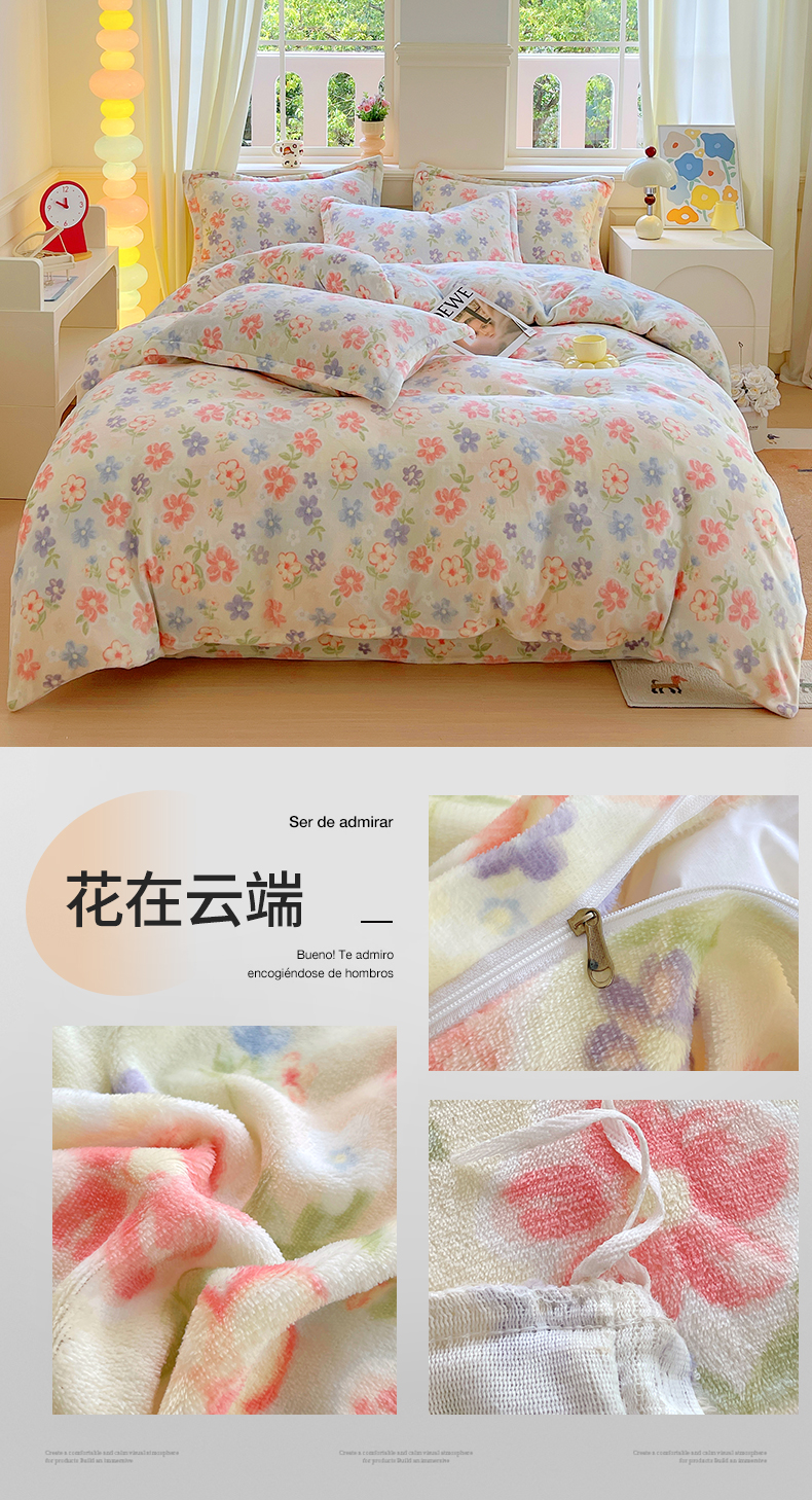 当前位置: 91家纺网 > 商品网购 > 床品套件 > 四件套 > 牛奶绒四件套 > 凯儿2025加厚A类印花牛奶绒单品四件套 花在云端