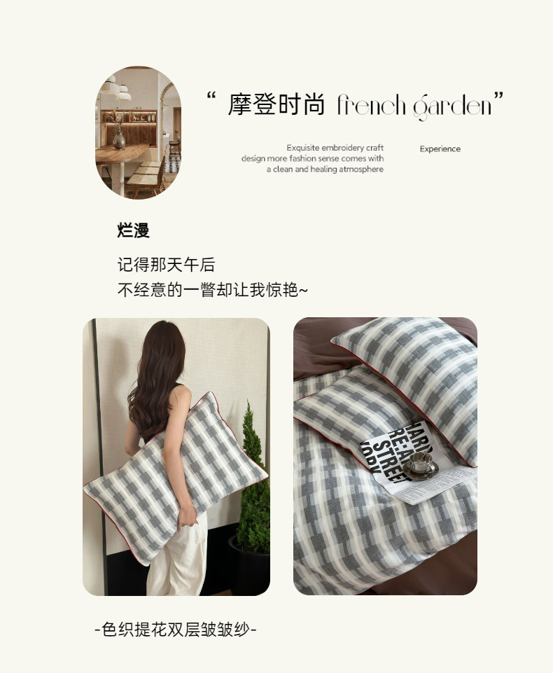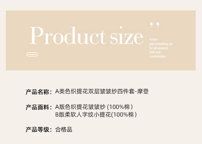 商品名称:(总)玛奇朵 2024秋冬新品韩国A类色织提花双层皱皱纱四件套-摩登