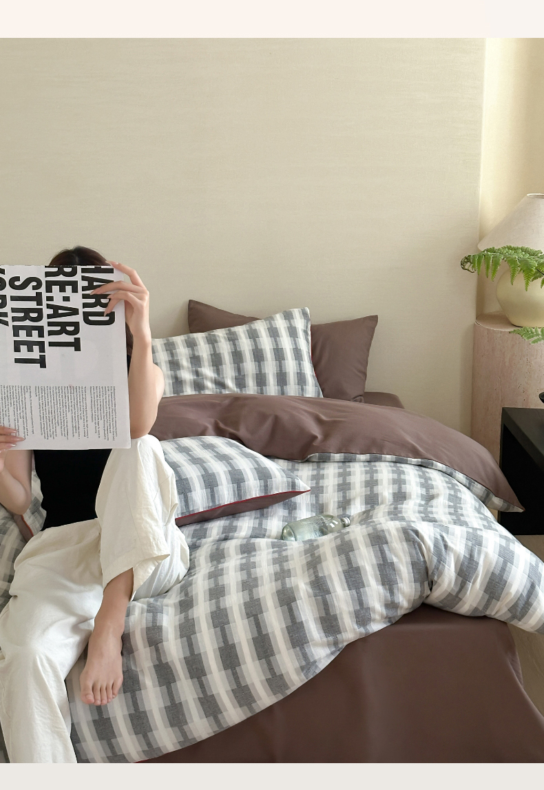(总)玛奇朵 2025秋冬新品韩国色织A类三层皱皱纱系列四件套,山屿,时序,巷往