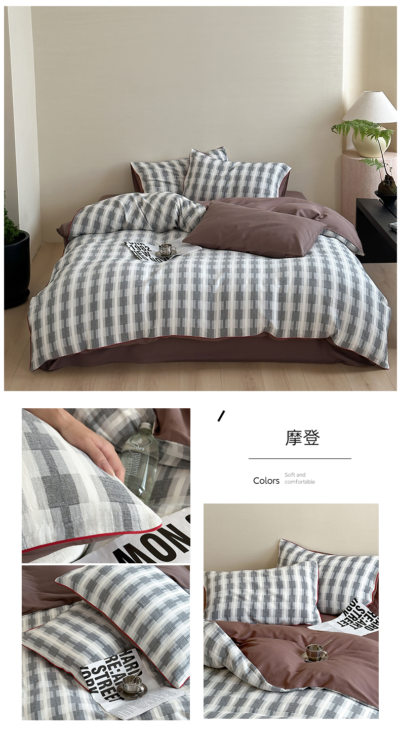 (总)玛奇朵 2024秋冬新品韩国A类色织提花双层皱皱纱四件套-摩登