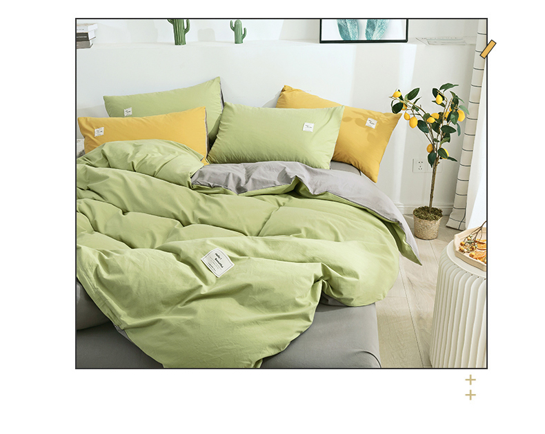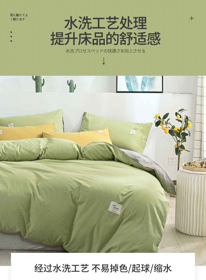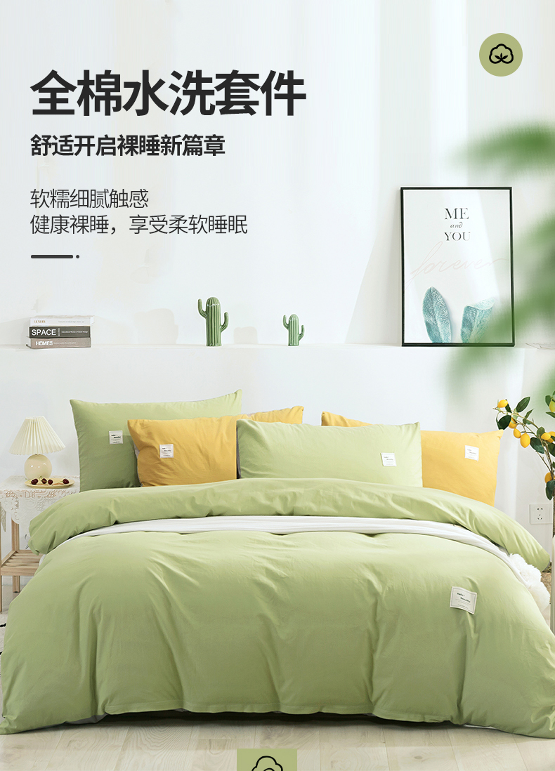 贝尔 PELLHOME 全棉纯棉水洗棉四件套1.5m1.8m纯色北欧风简约(可抖音代发) 浅绿