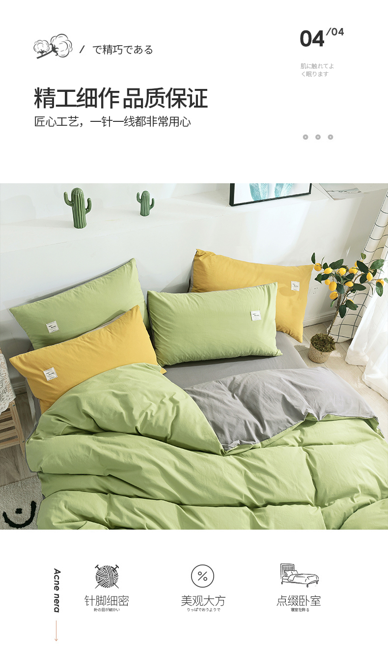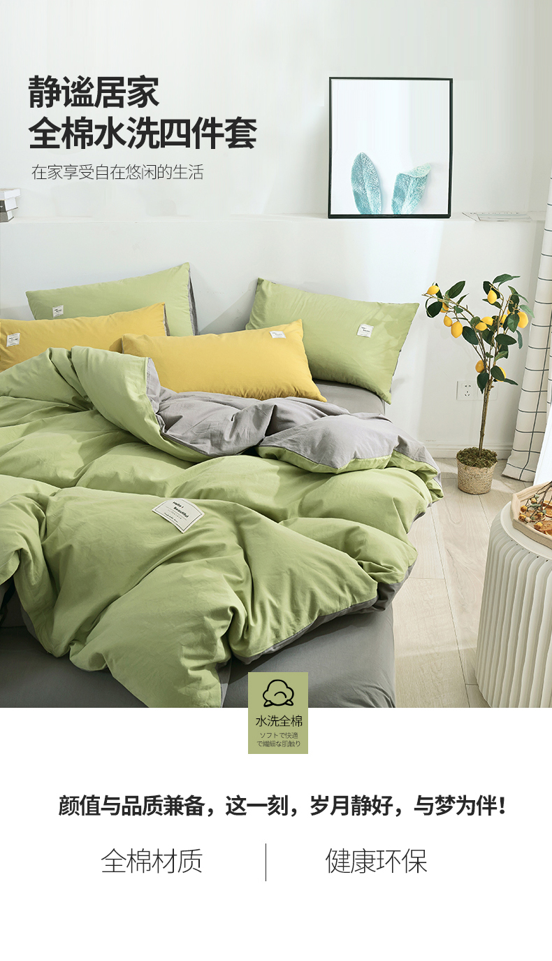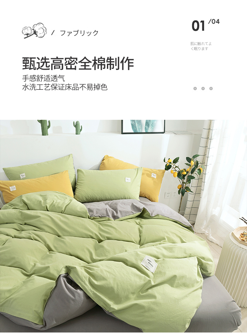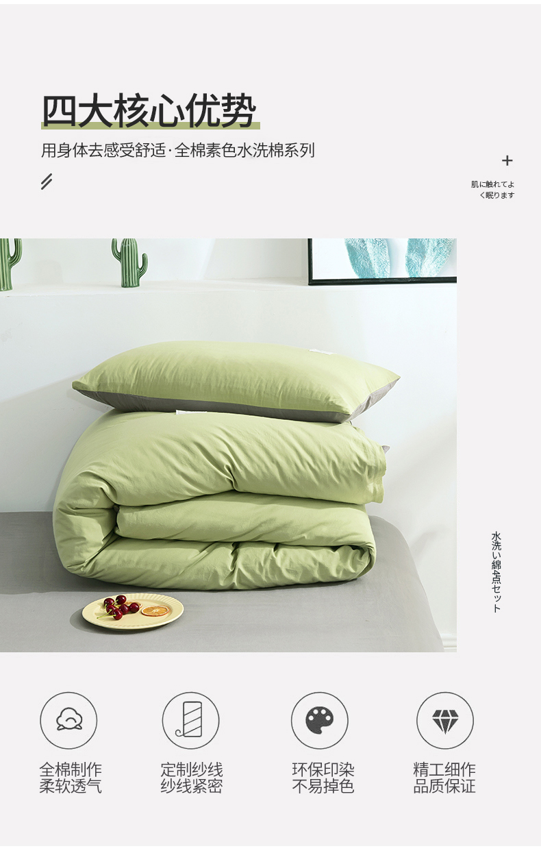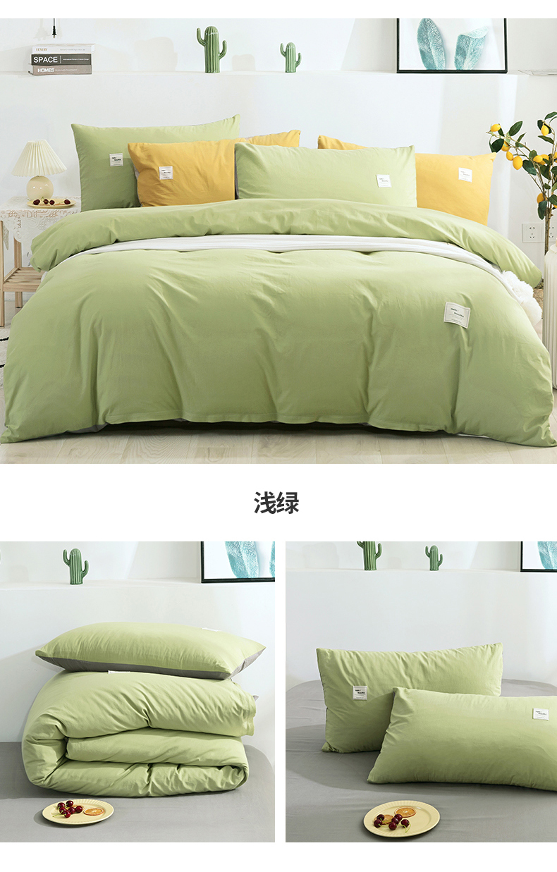 商品名称:贝尔 PELLHOME 全棉纯棉水洗棉四件套1.5m1.8m纯色北欧风简约(可抖音代发) 浅绿