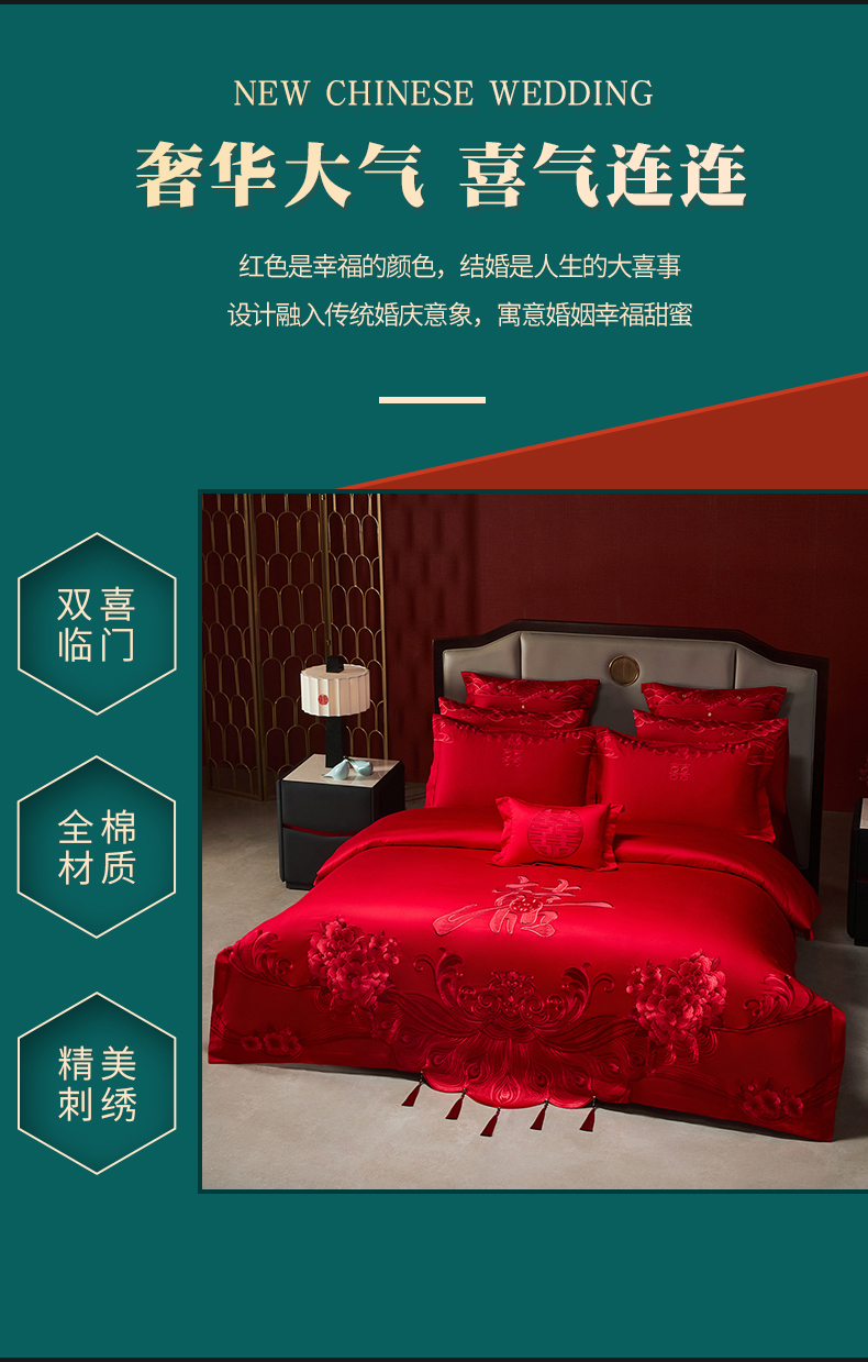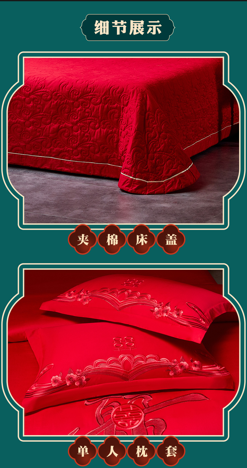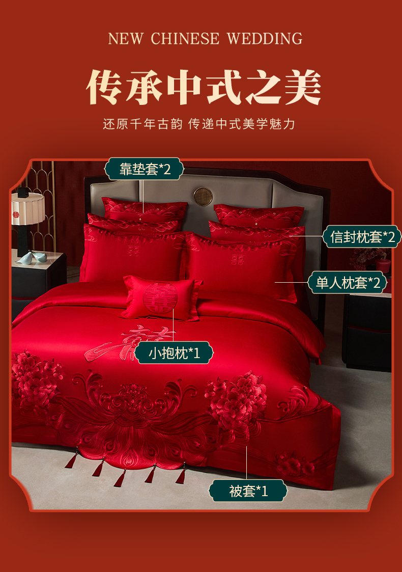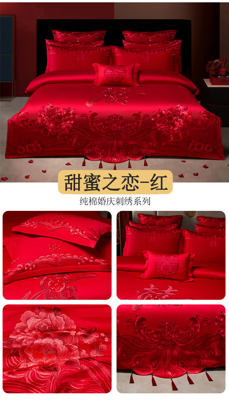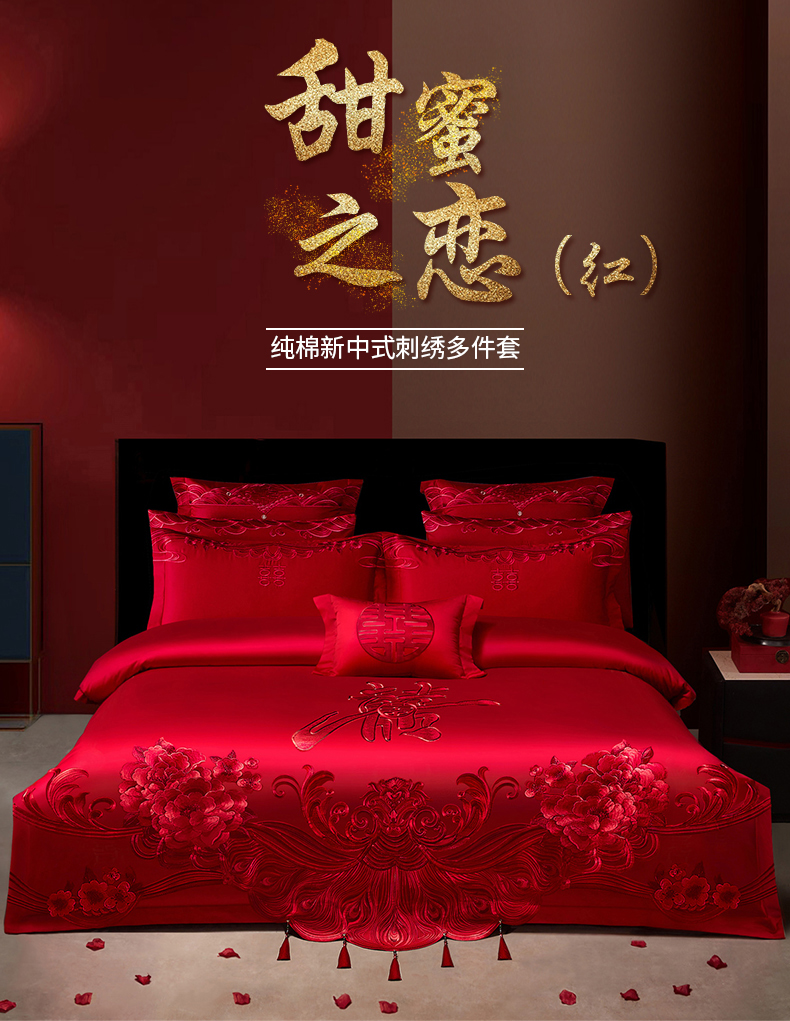 当前位置: 91家纺网 > 商品网购 > 床品套件 > 四件套 > 婚庆四件套 > 宏羽纺家纺 2025新款全棉100%全棉新中式婚庆多件套全棉甜蜜之恋-红