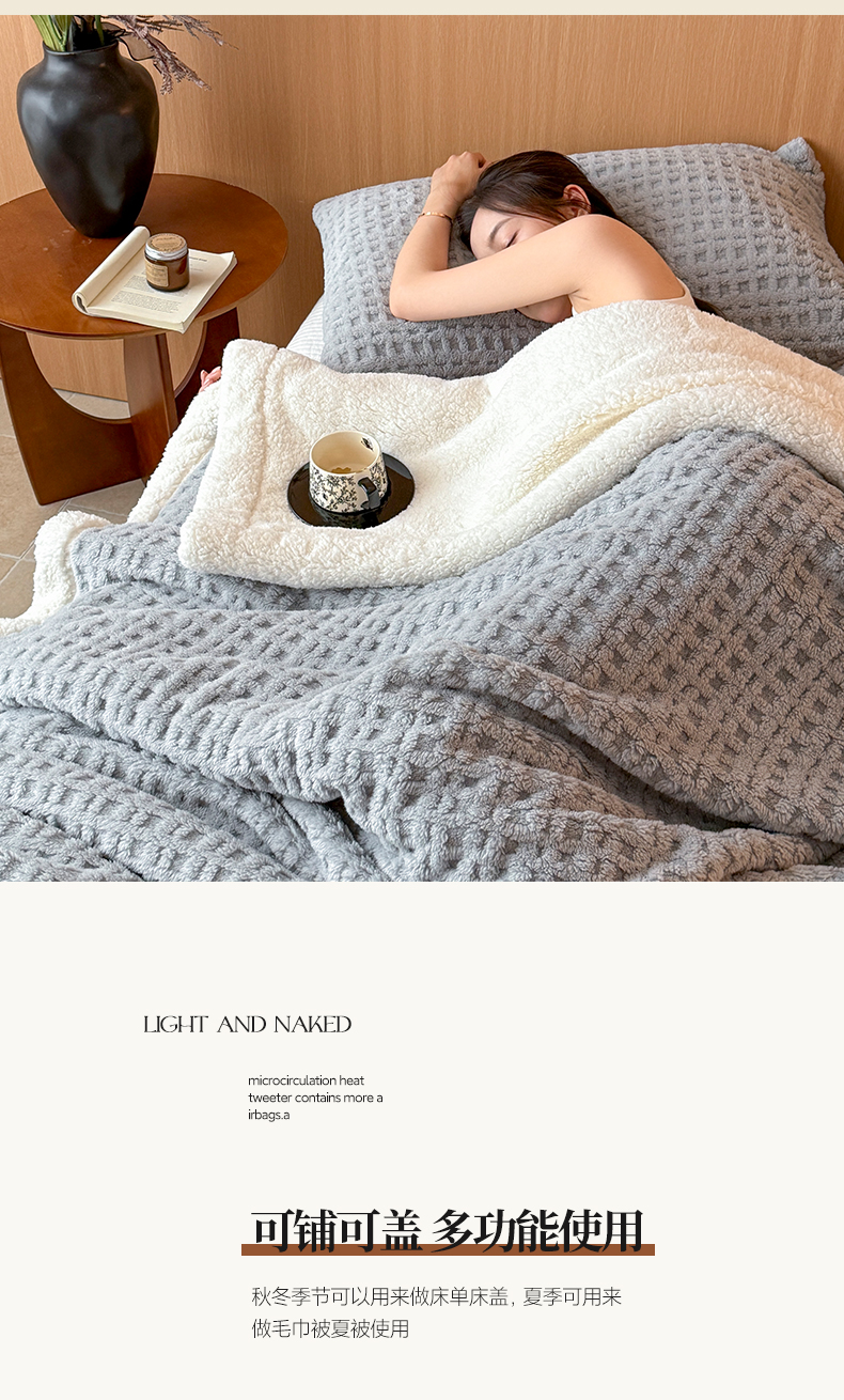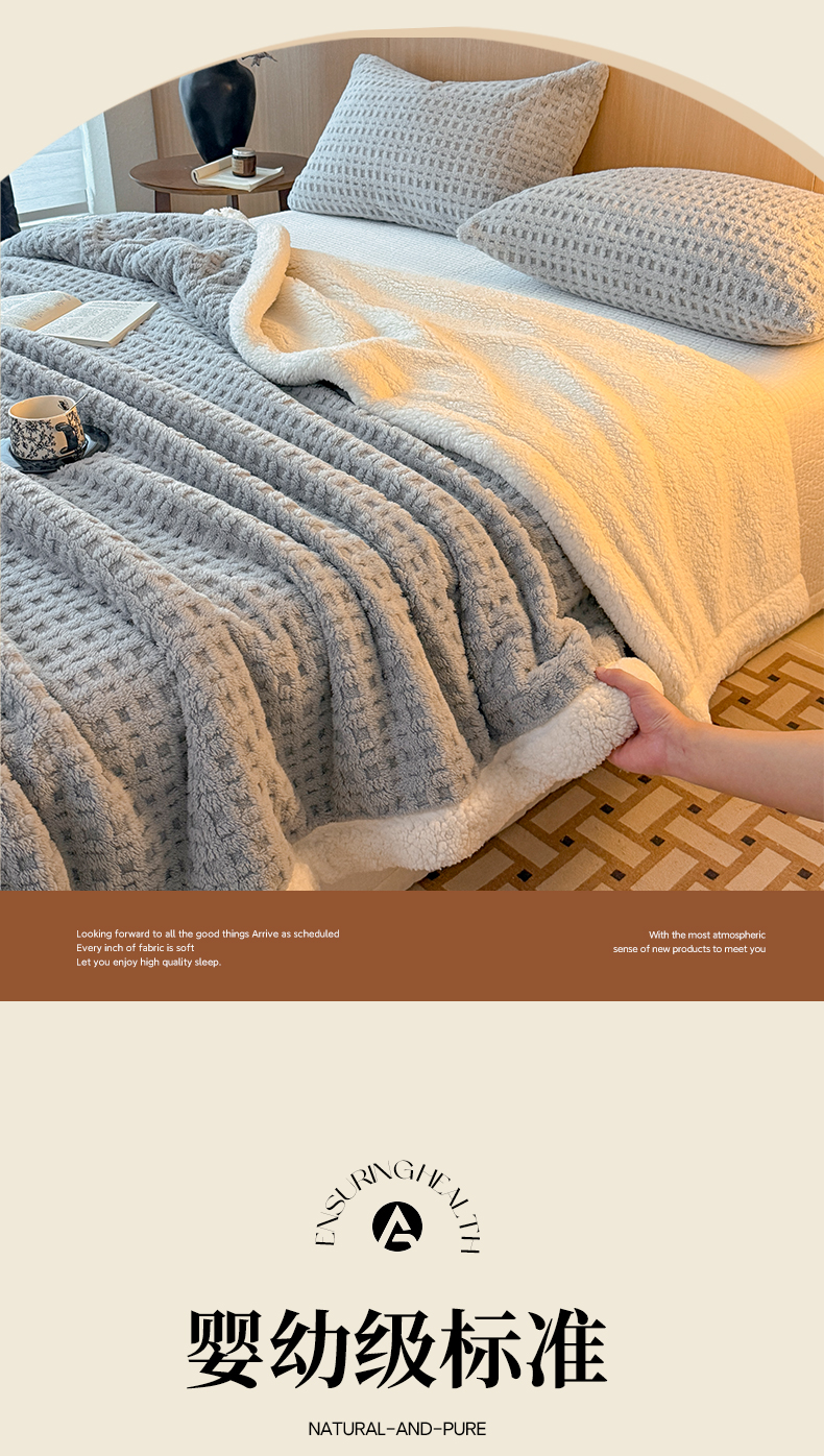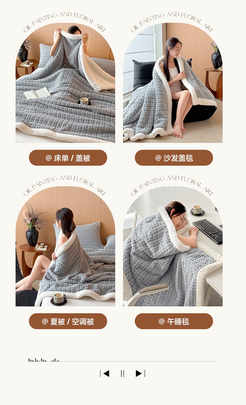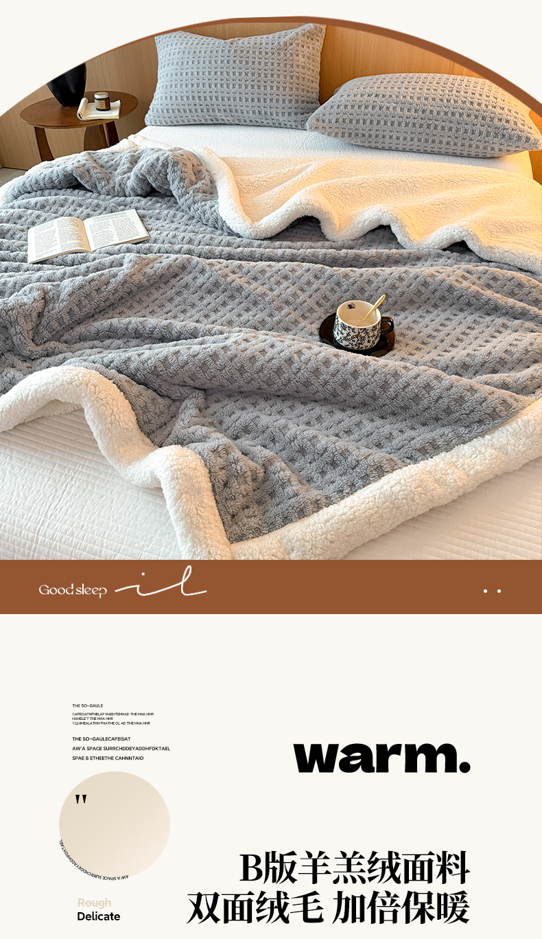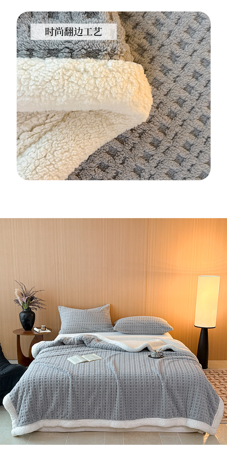 欧邦 2025新款华夫格羊羔绒双层毯盖毯毯子-场景2 华夫格-烟灰