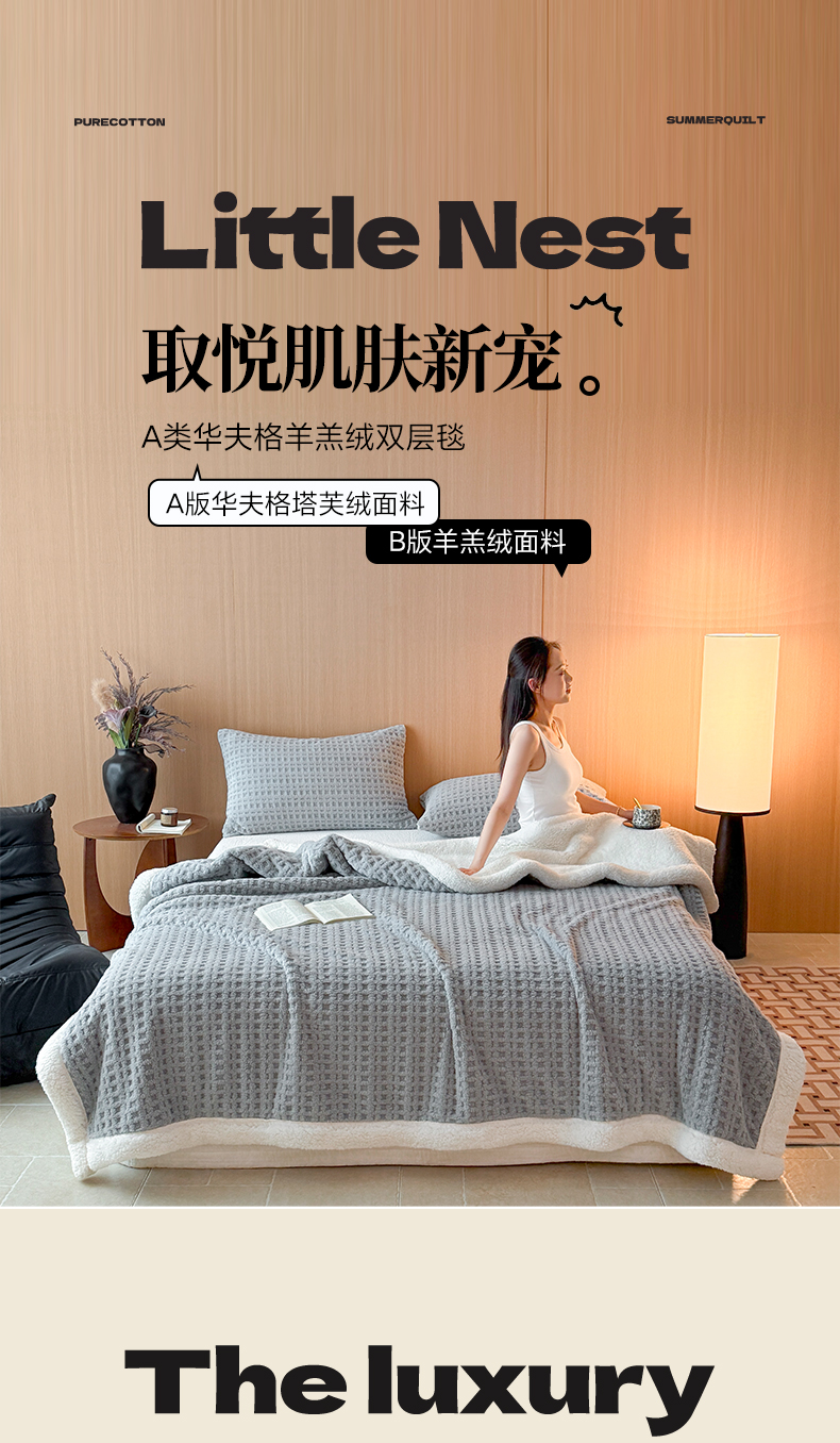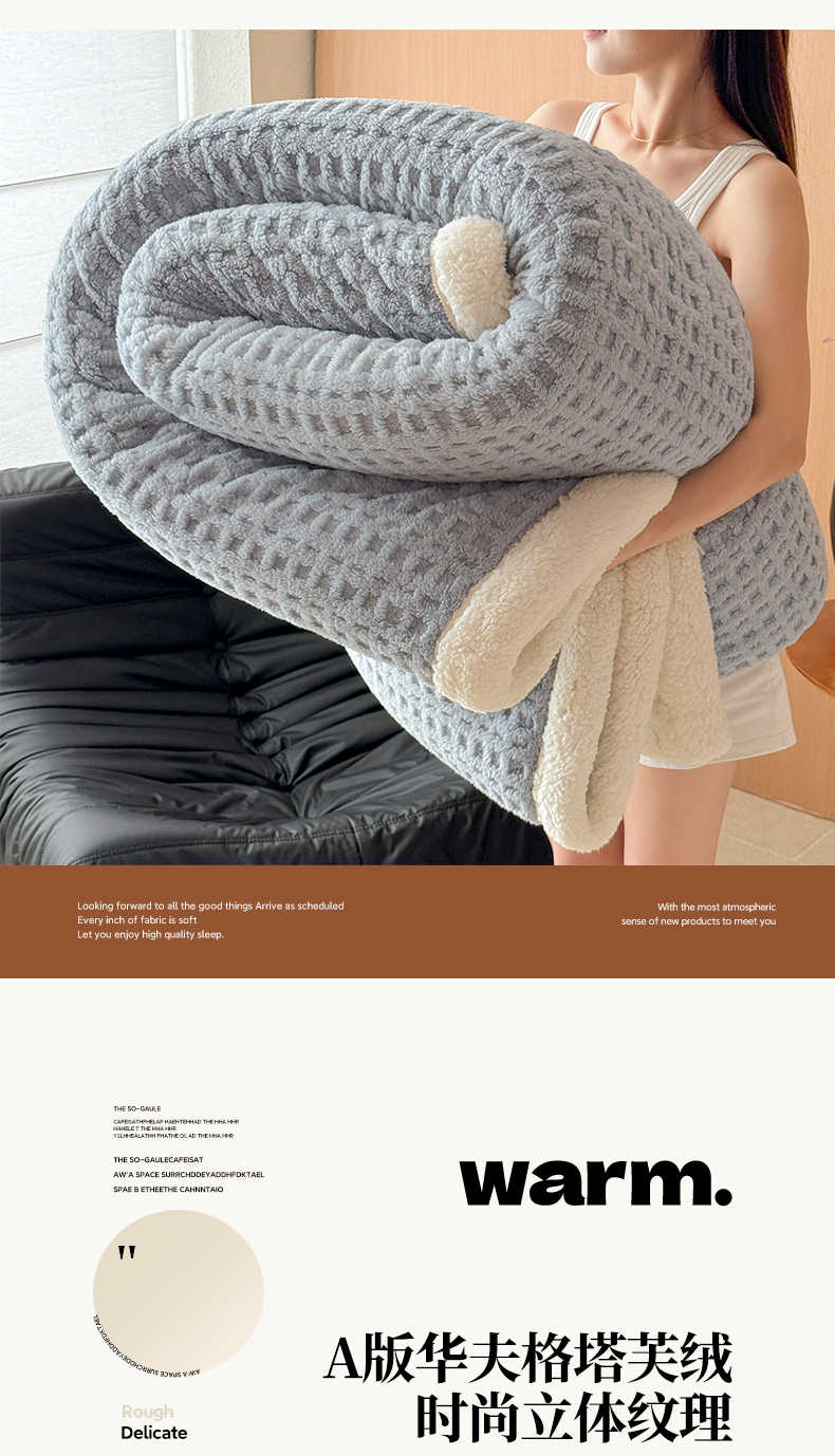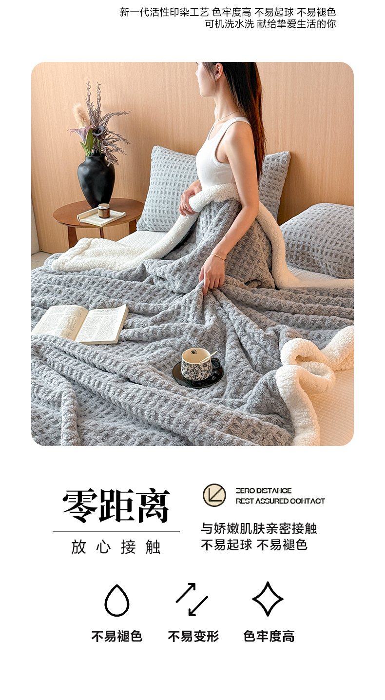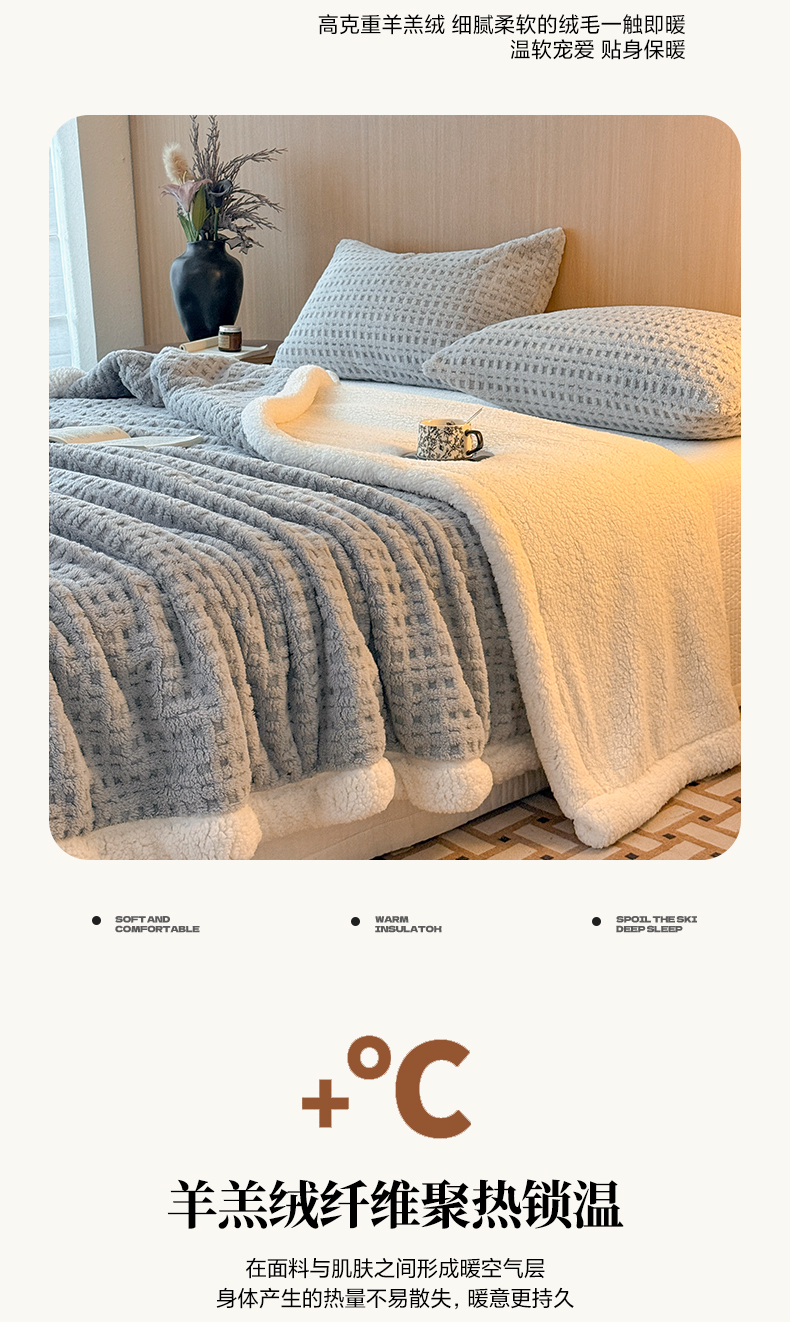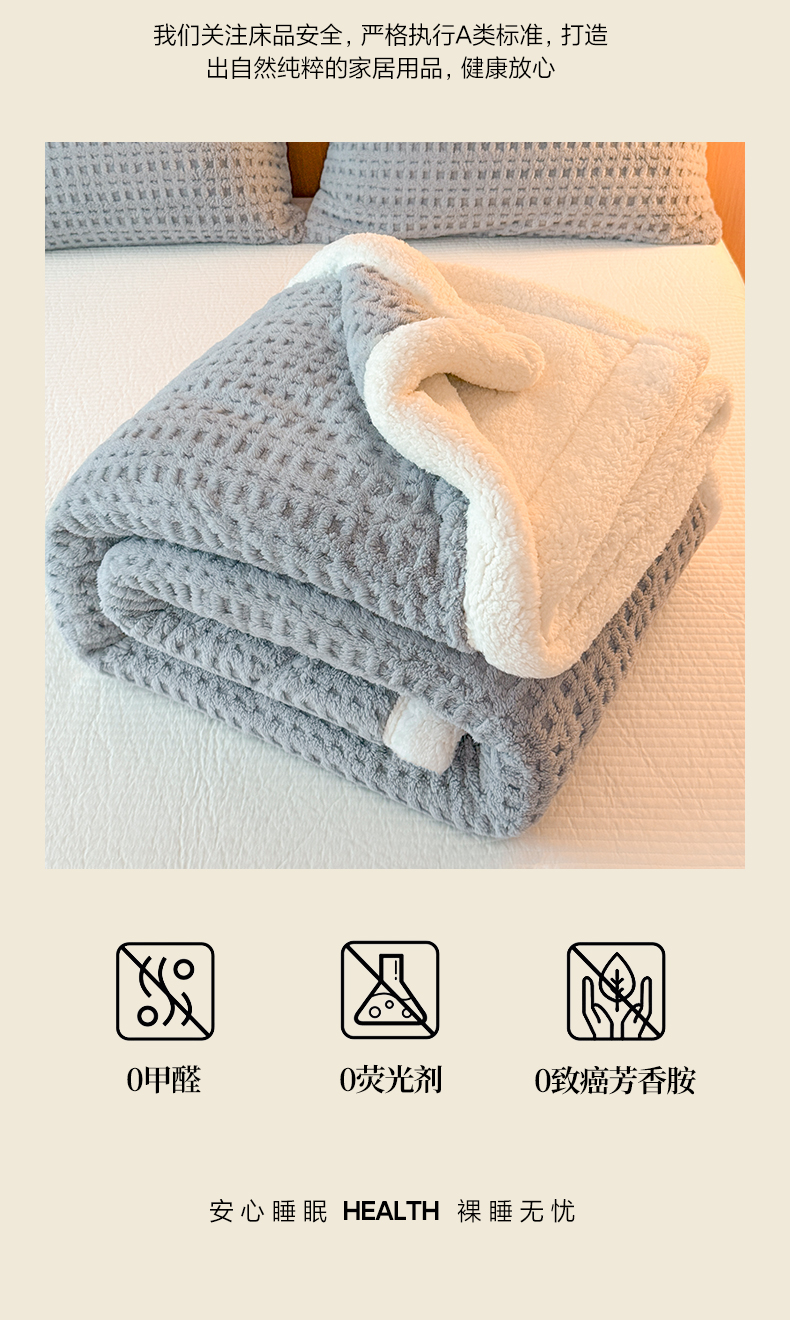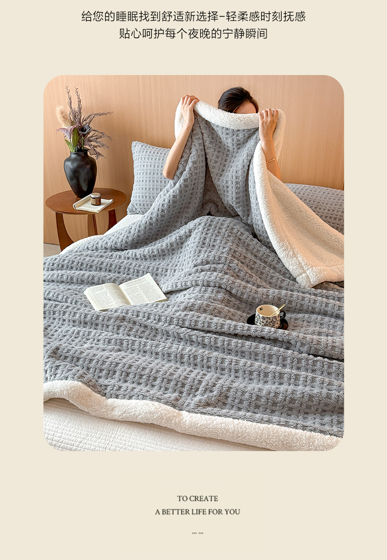 欧邦 2025新款华夫格羊羔绒双层毯盖毯毯子-场景2 华夫格-烟灰