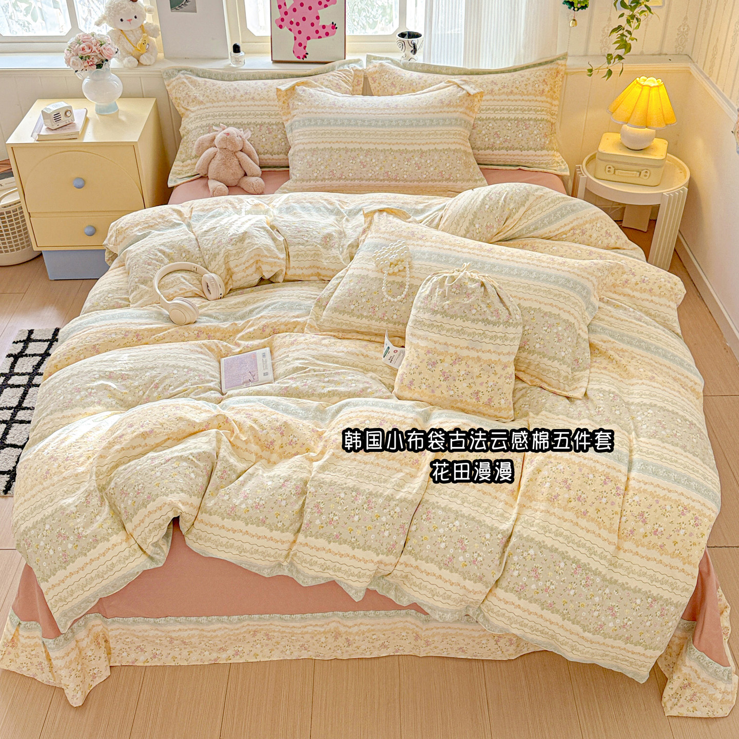 商品名称:梦莱斯 2025新款韩国小布袋古法云感棉四件套 花田浪漫