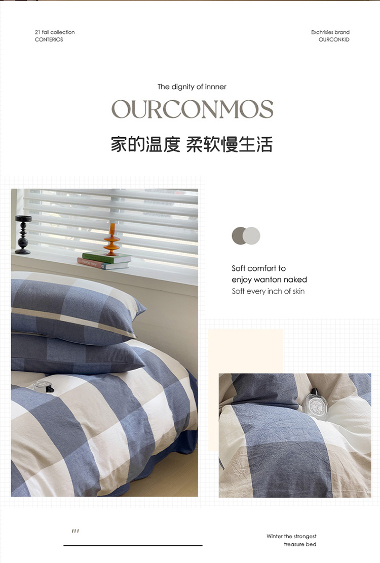 当前位置: 91家纺网 > 商品网购 > 床品套件 > 四件套 > 水洗棉四件套 > 千姿梦 2025新款全棉水洗棉四件套 蓝大格