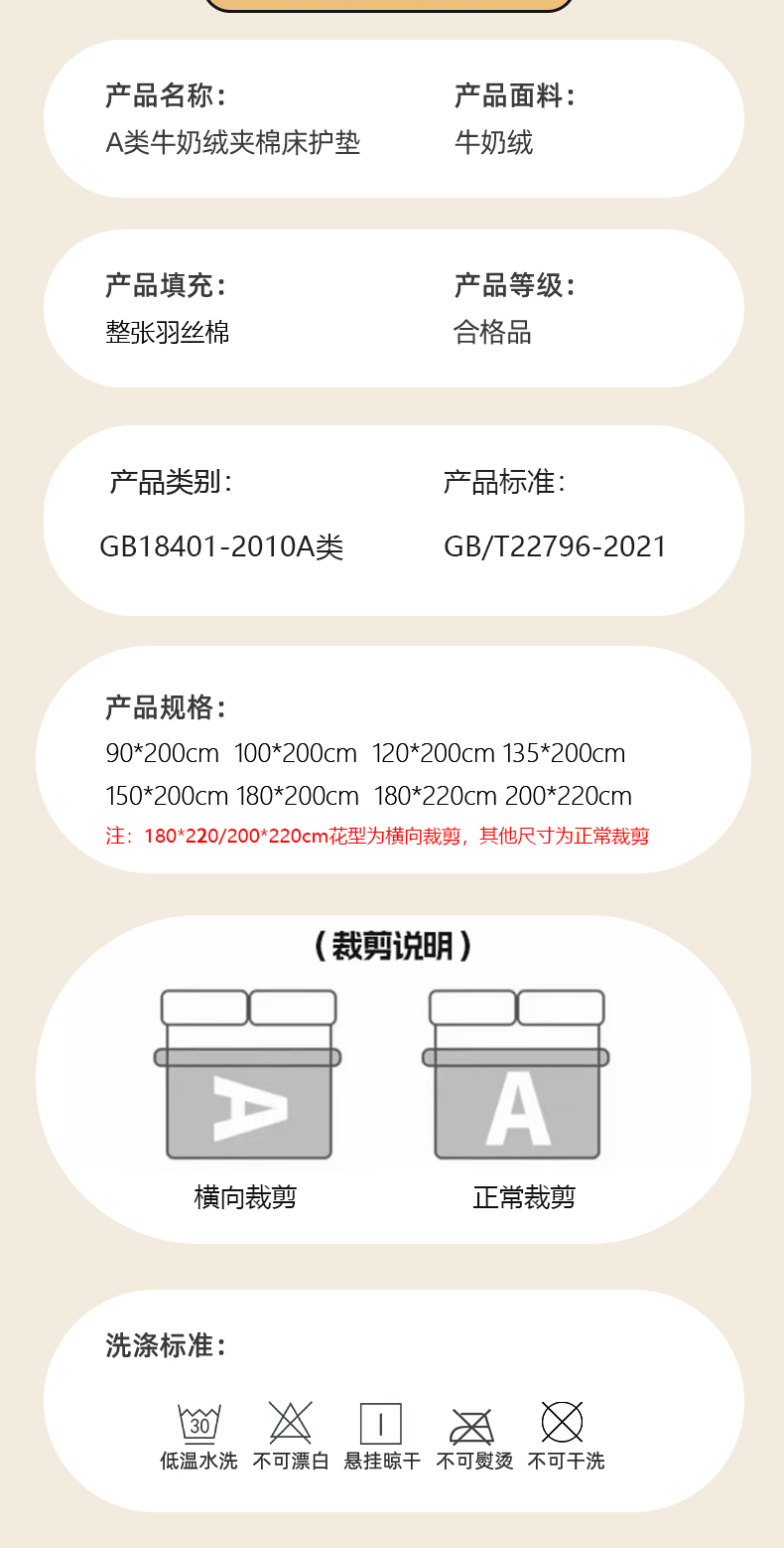 180*220cm单件床垫 花型需横着裁剪