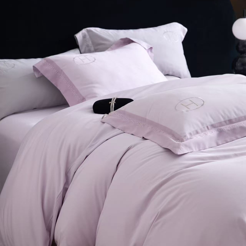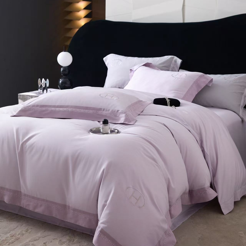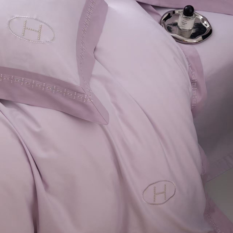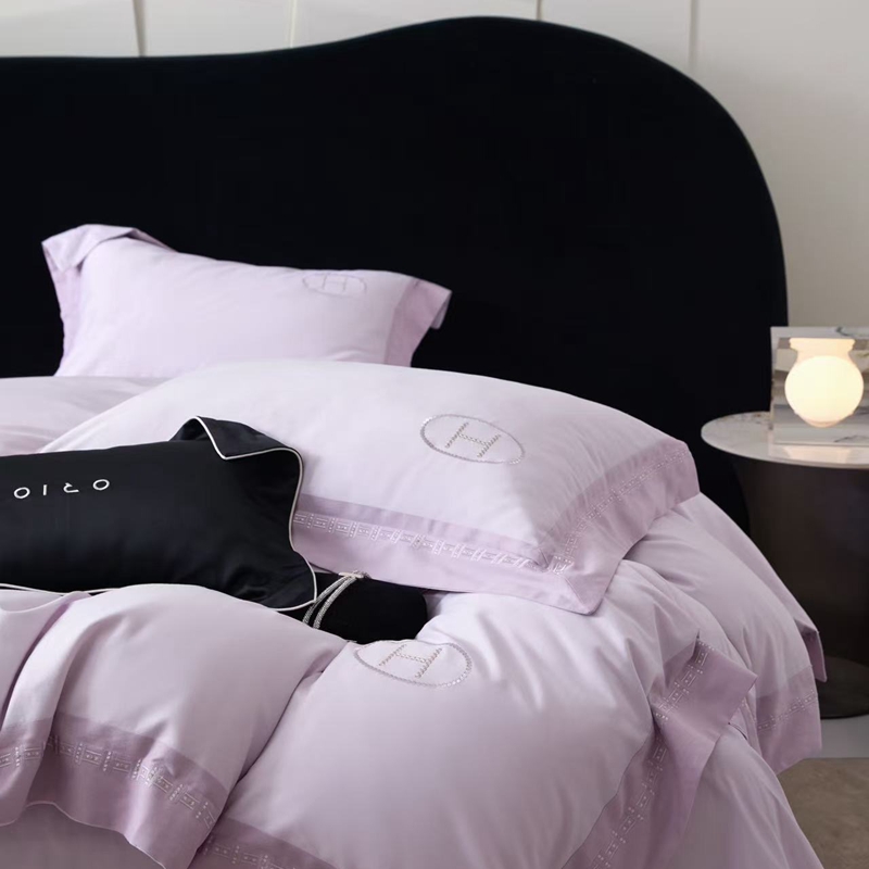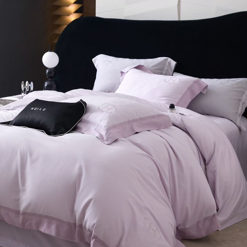 (总)嘉汀兰 2023新款60支全棉磨毛绣花撞色轻奢四件套—暮里,粉色,红灰色,芥绿色,浅灰色,深青色