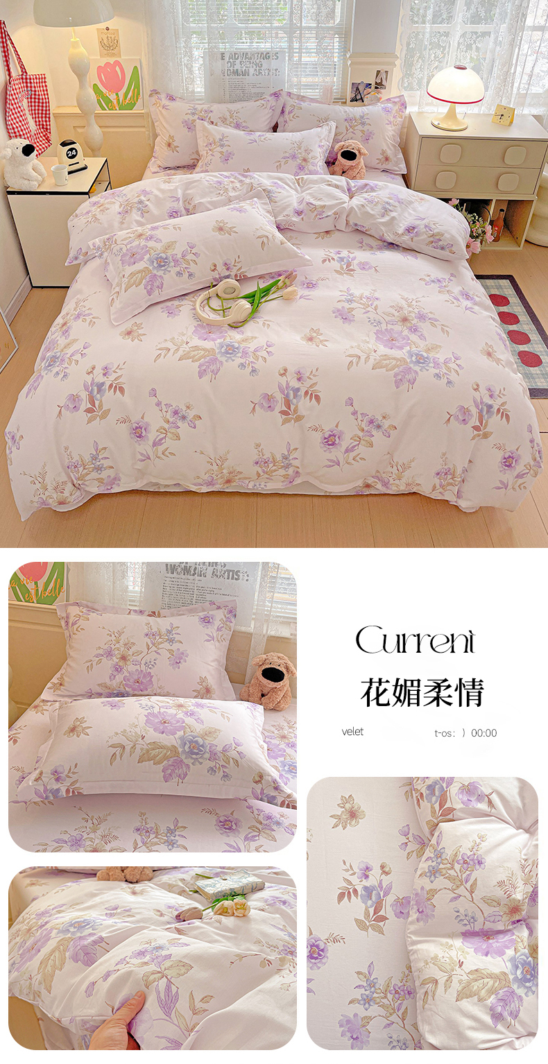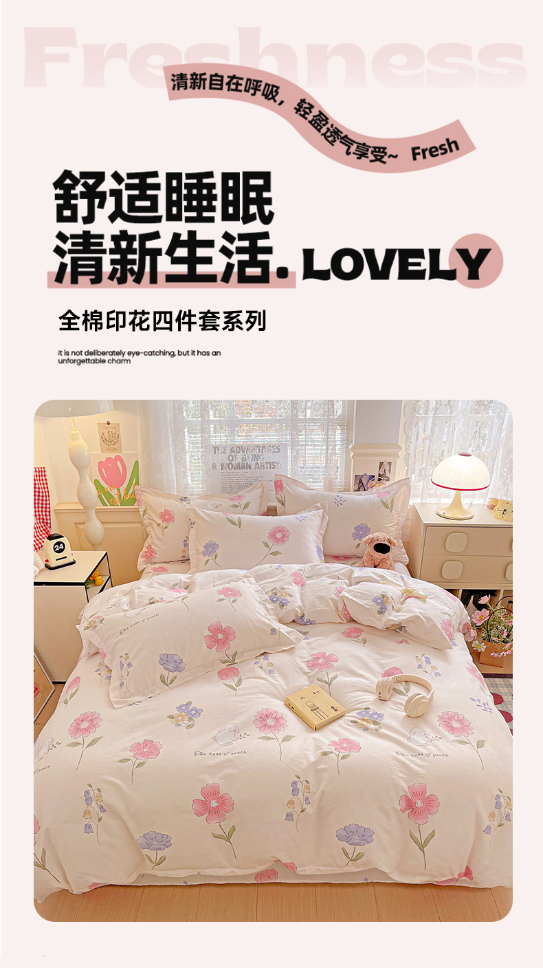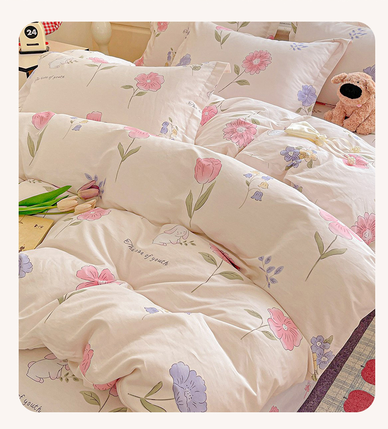 当前位置: 91家纺网 > 商品网购 > 床品套件 > 四件套 > 全棉普通四件套 > 文黛家居 2025新款全棉喷气印花全棉纯棉印花系列四件套 花丛小兔