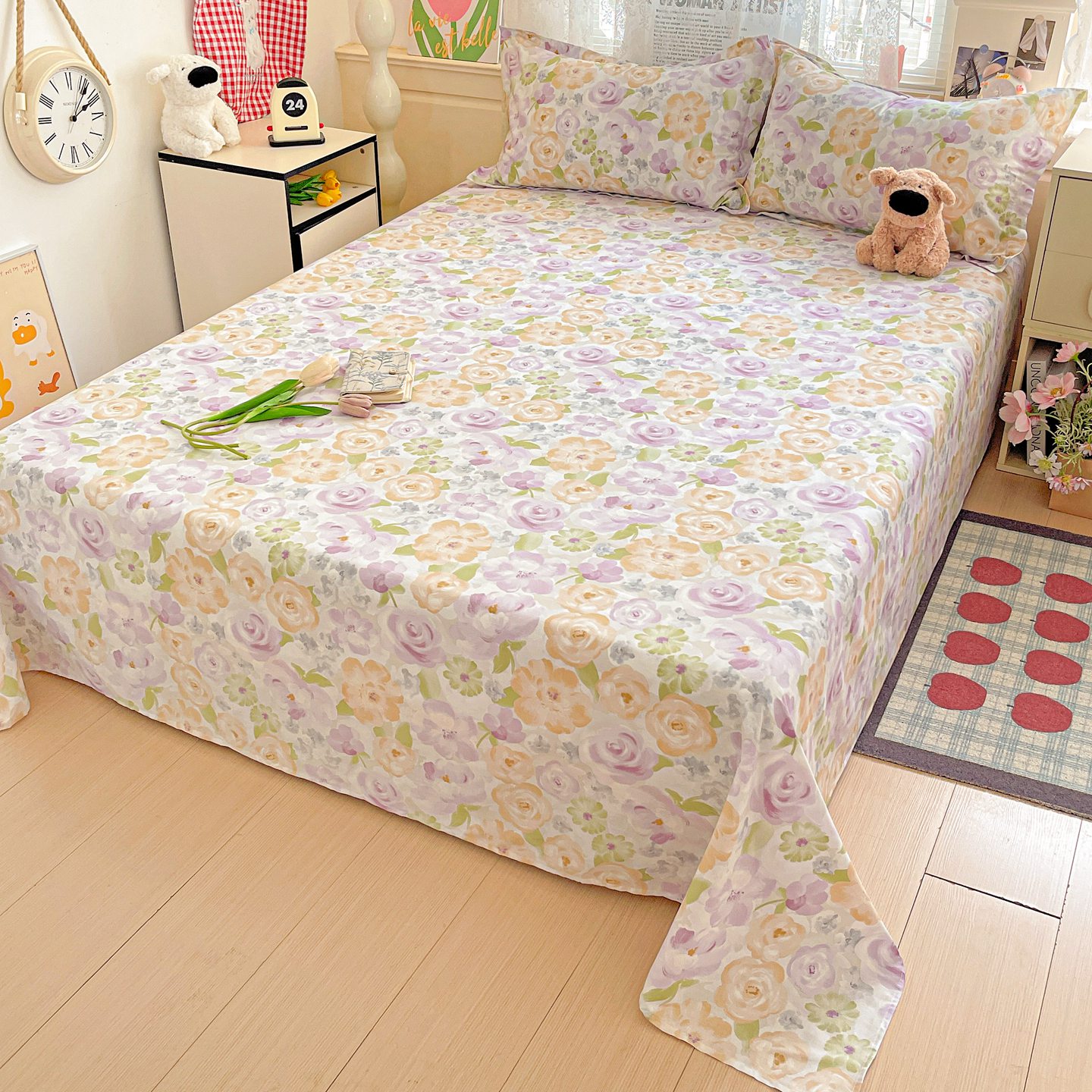 • 91家纺网 家纺一手货源 找家纺 文黛家居 2025新款全棉喷气印花全棉纯棉印花系列单品床单床单单件单床单 花想容