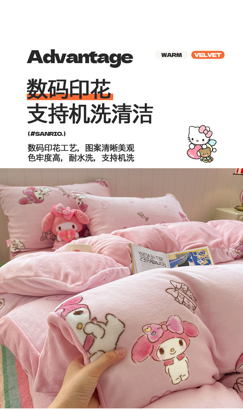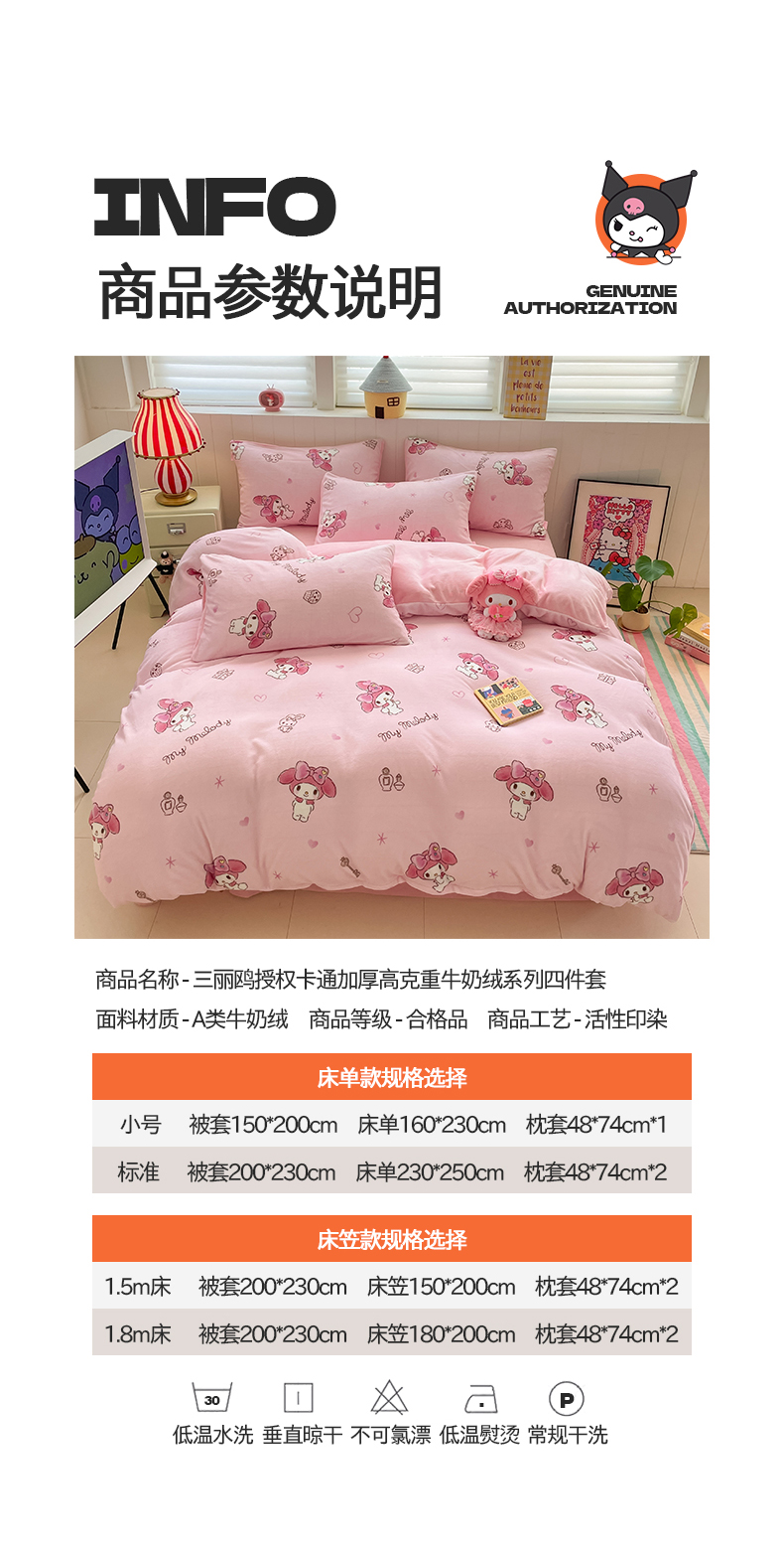 当前位置: 91家纺网 > 商品网购 > 床品套件 > 四件套 > 牛奶绒四件套 > 桃子家居 2025新款A类正版三丽鸥授权卡通加厚高克重牛奶绒系列四件套 绒三丽鸥-萌萌美乐蒂
