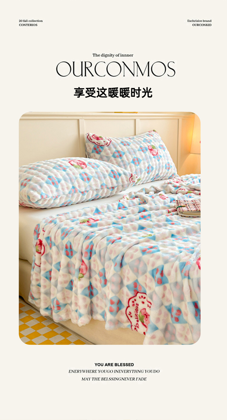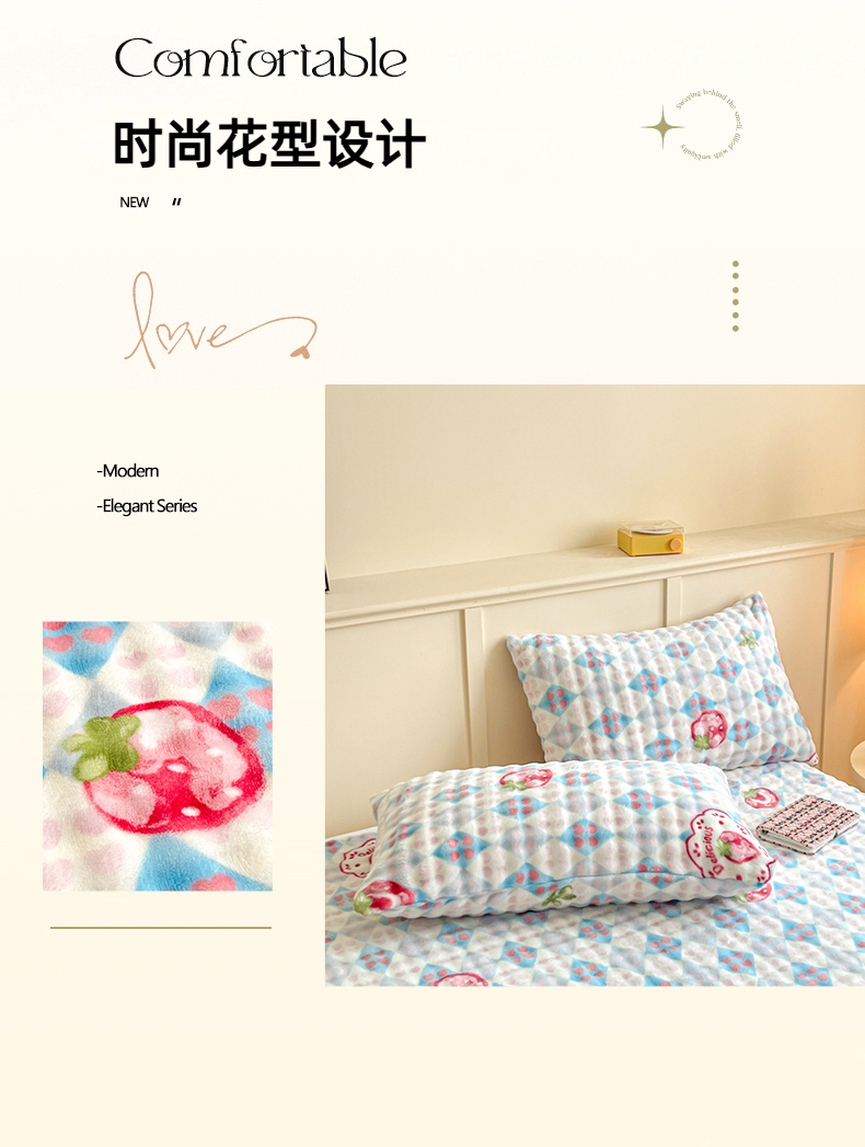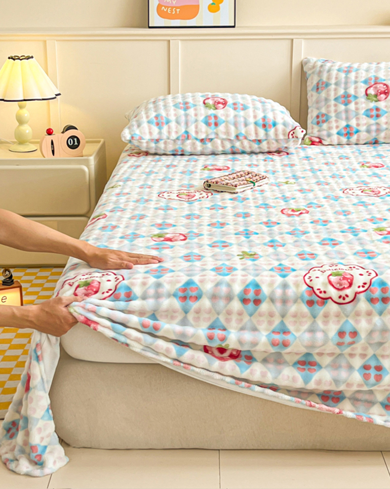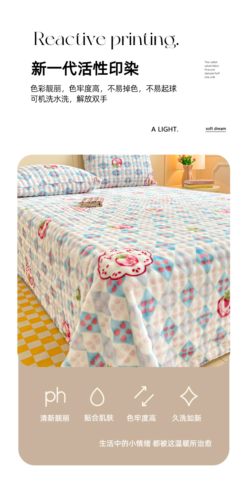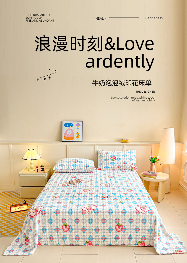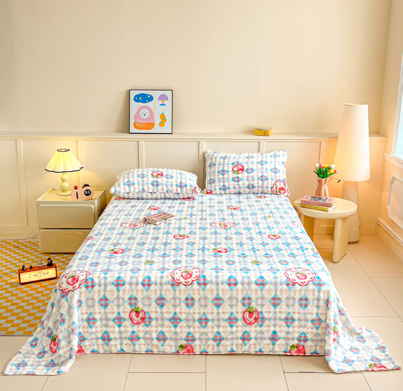 • 91家纺网 家纺一手货源 找家纺 爱屋及屋 2025新款牛奶泡泡绒印花单床单 床单单件 草莓格