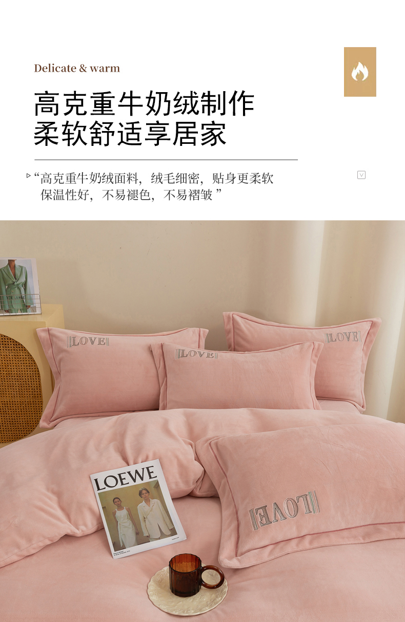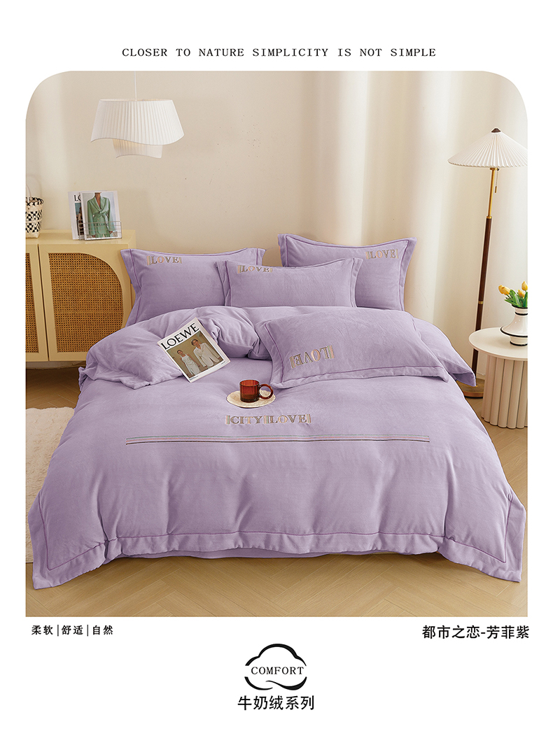 商品名称:(总)绒博士 2025新款220克牛奶绒刺绣宽边款四件套--都市之恋系列