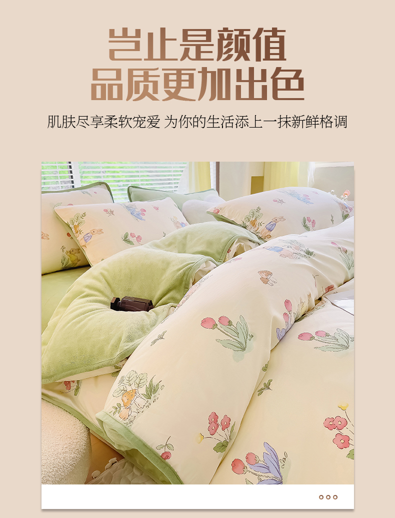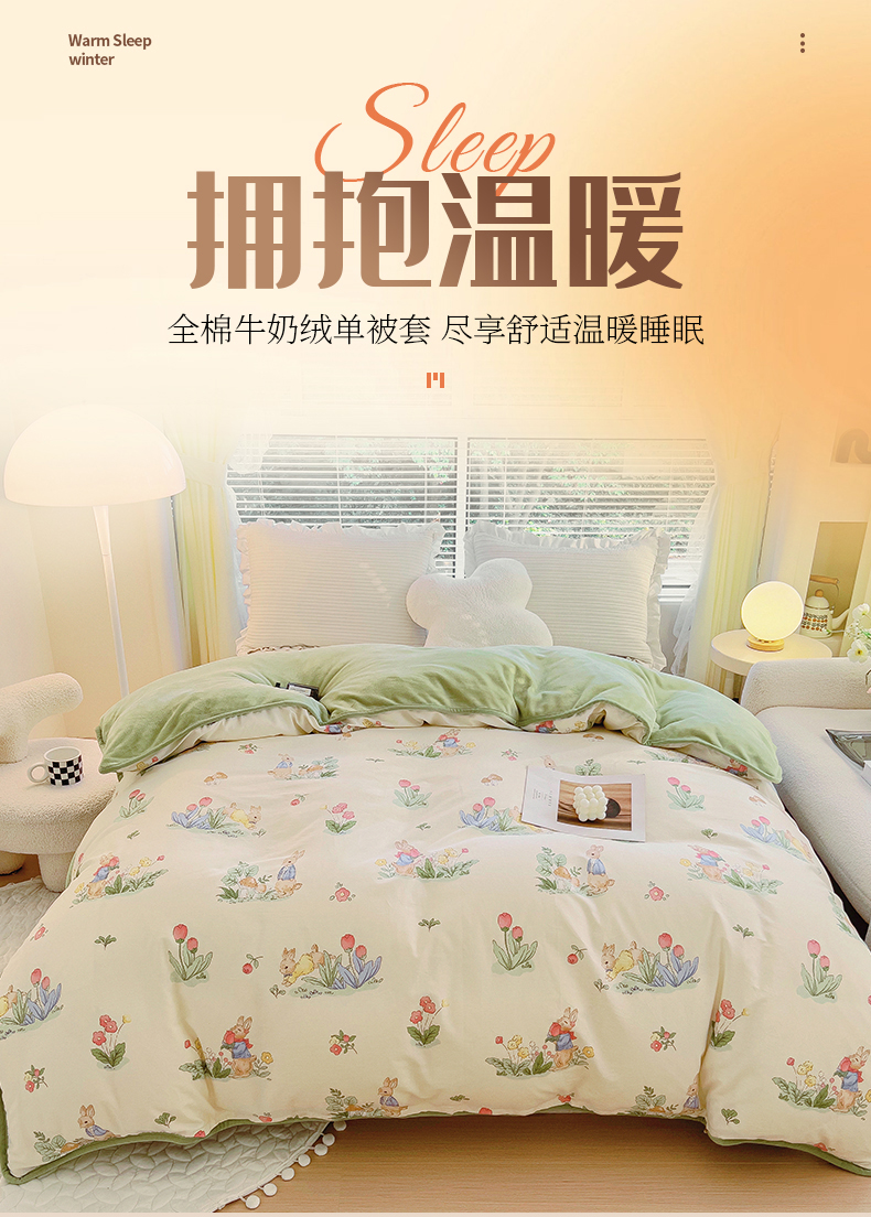 琪琪阁 2023新款A棉B绒棉加绒牛奶绒四件套单被套 宁静生活,宁静生活