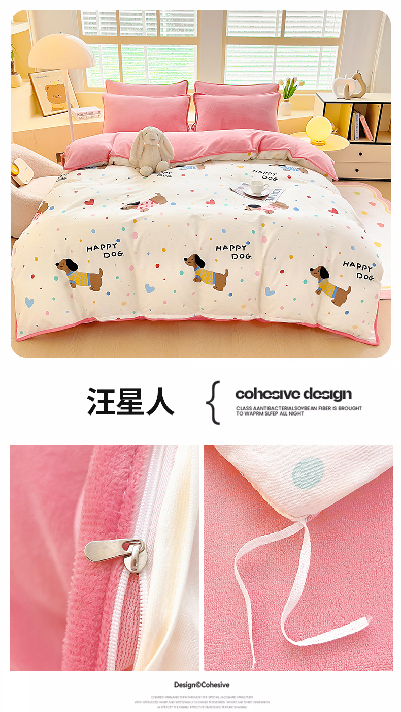 琪琪阁 2023新款A棉B绒棉加绒牛奶绒四件套单被套 快乐伙伴,快乐伙伴