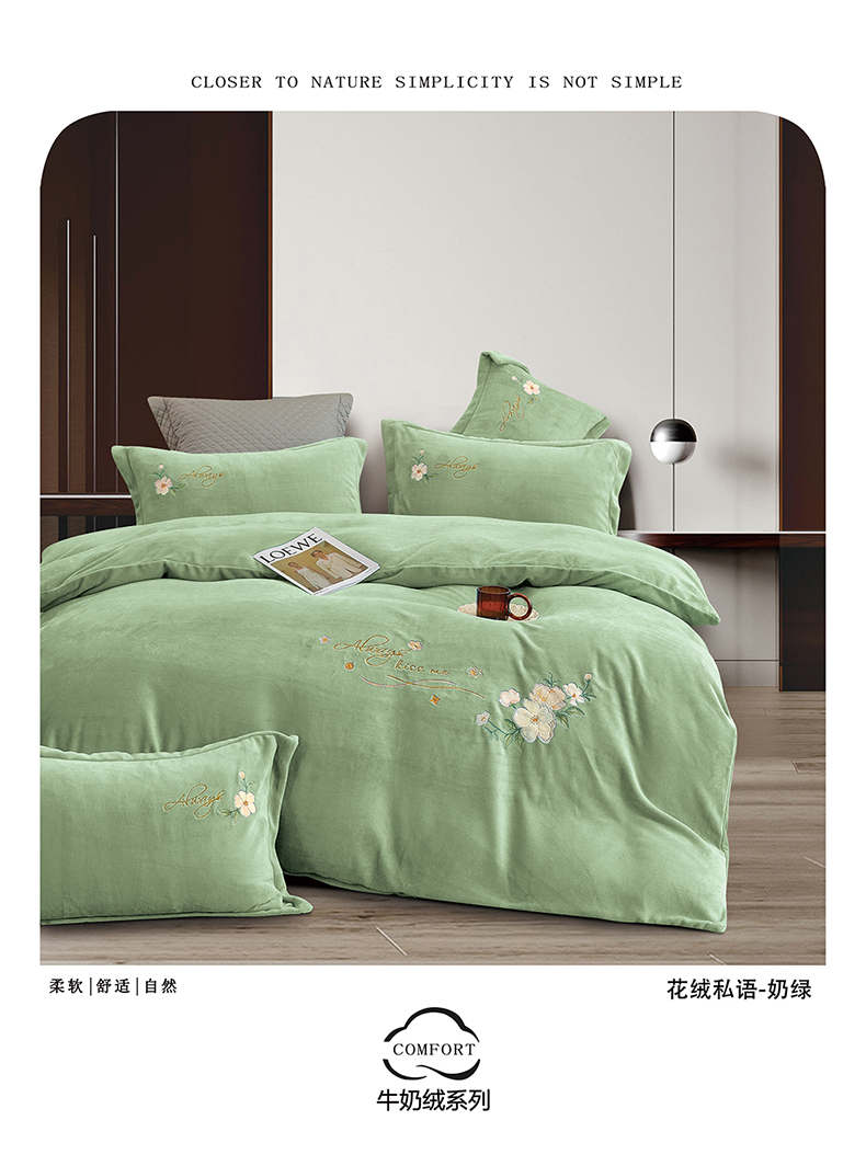 (总)绒博士 2025新款220克牛奶绒刺绣四件套--叶烨生辉系列,叶烨生辉-奶绿,叶烨生辉-宾利蓝,叶烨生辉-豆沙,叶烨生辉-芳菲紫,叶烨生辉-灰色,叶烨生辉-樱花粉