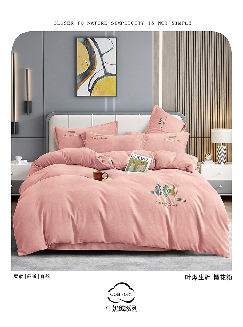 绒博士 2025新款220克牛奶绒刺绣四件套--叶烨生辉系列 叶烨生辉-樱花粉