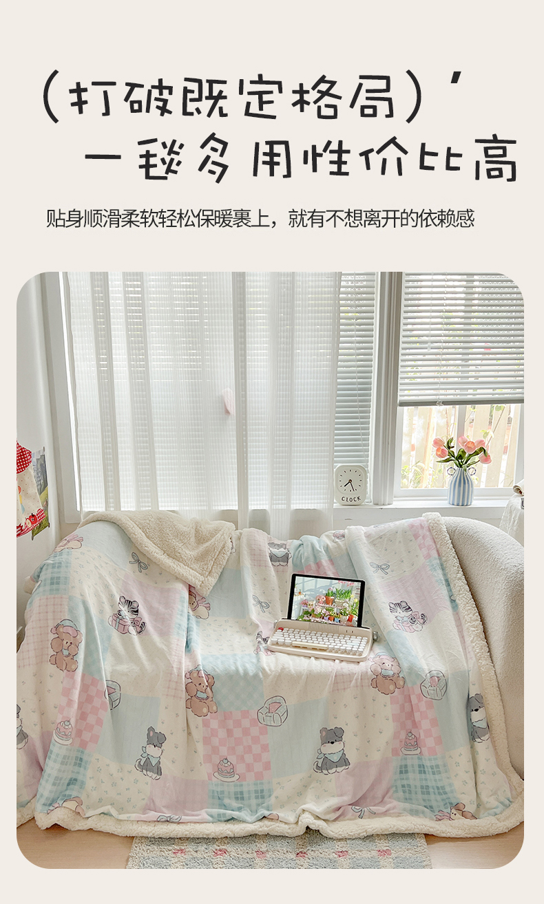 商品名称:耀悦家纺 2025新款毛毯带拉链被套两用加厚高克重牛奶绒毯子羊羔绒 小奶狗派对