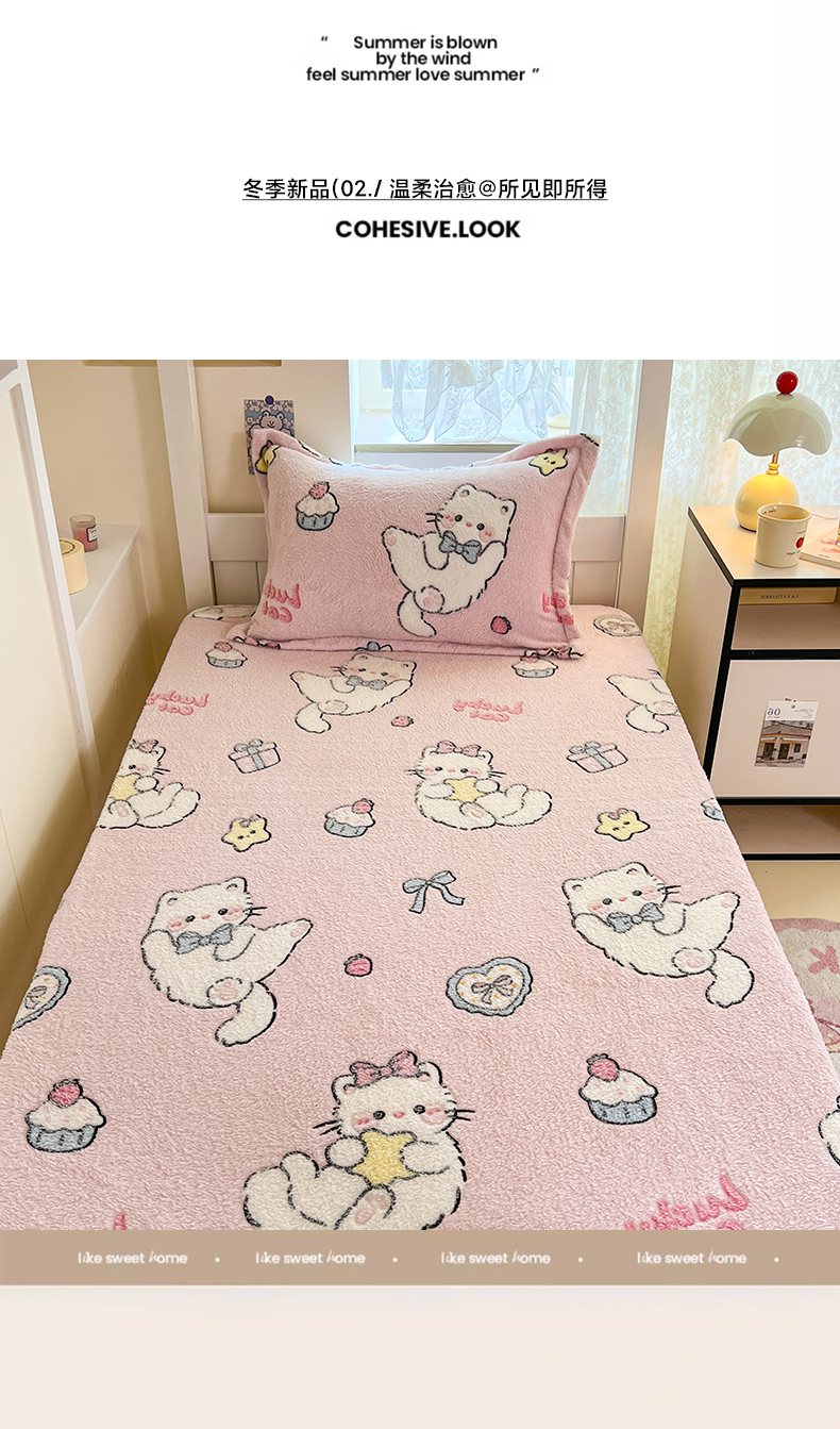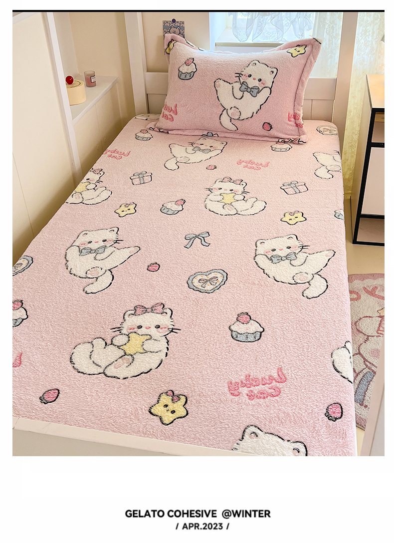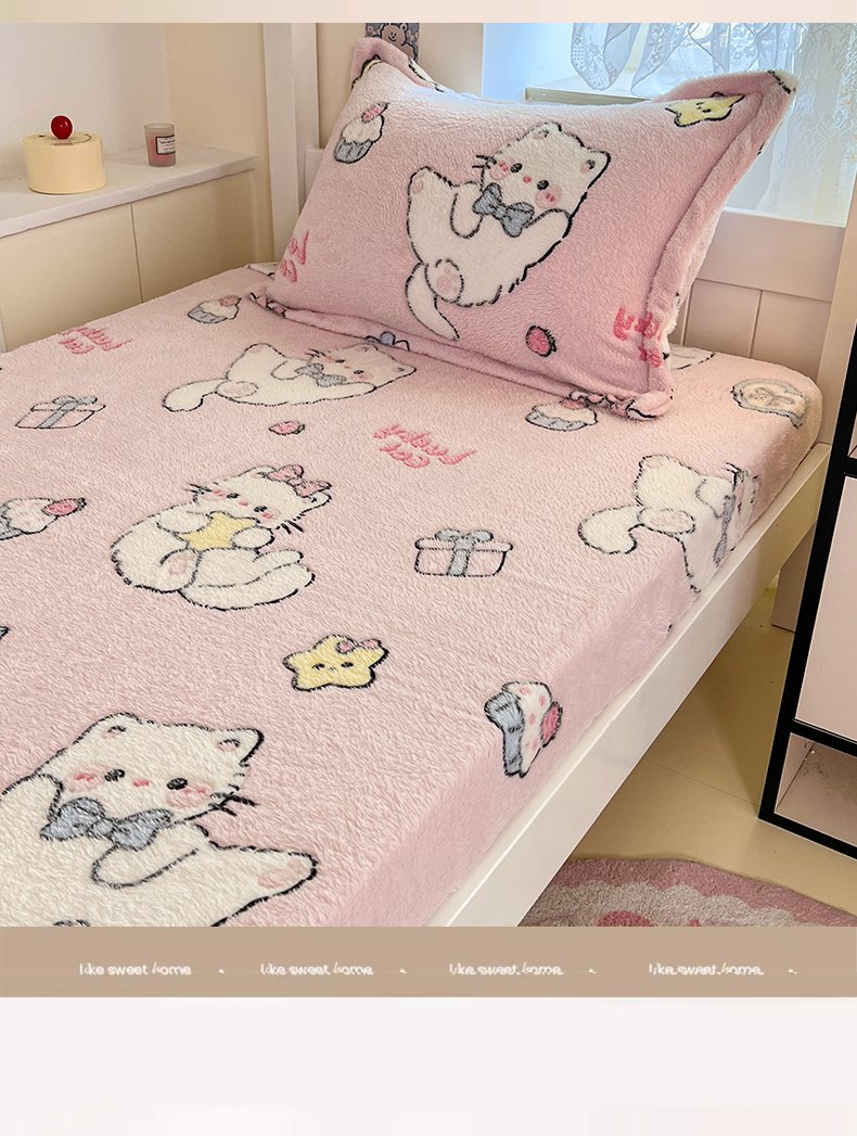 川悦生活 2025新款雪花绒宿舍单床笠 床笠甜梦小猫