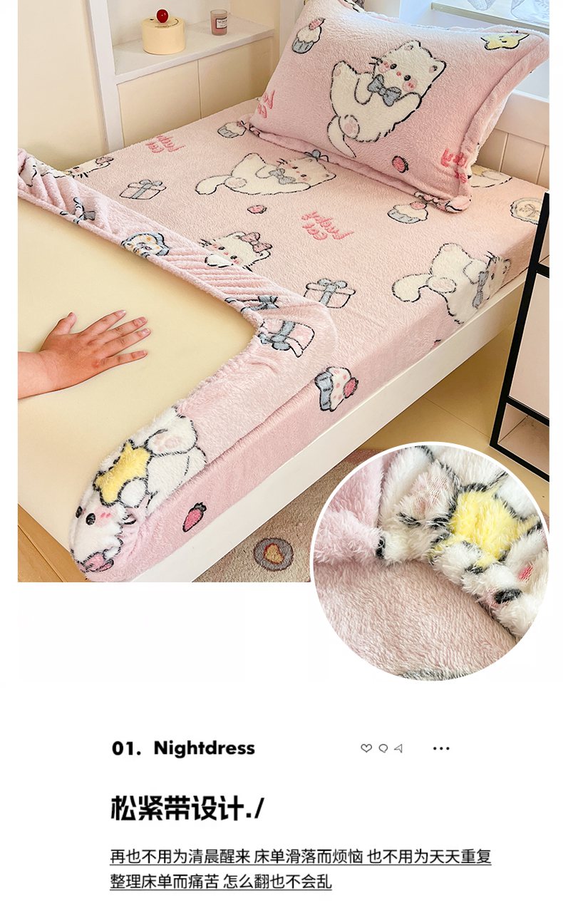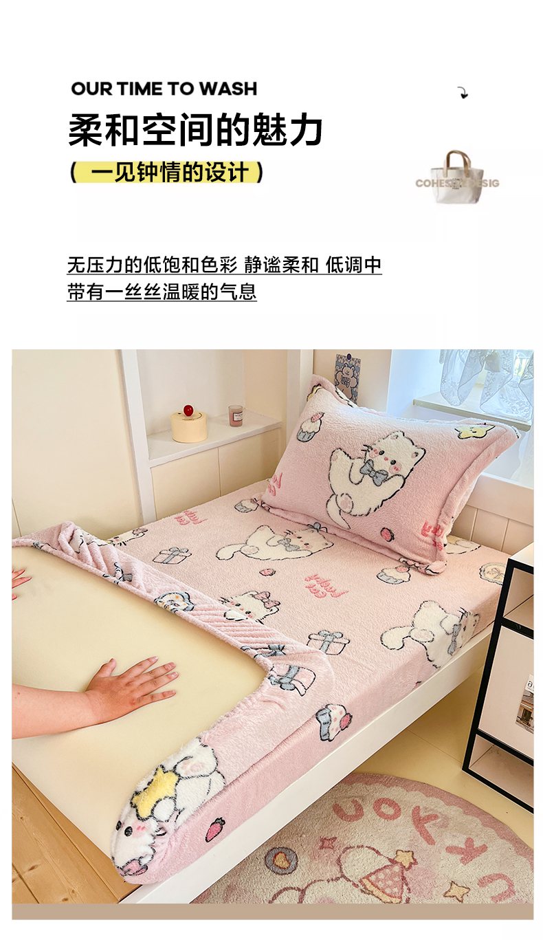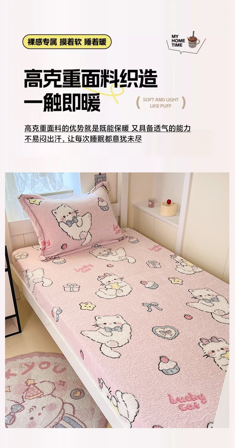 • 91家纺网 家纺一手货源 找家纺 川悦生活 2025新款雪花绒宿舍单床笠 床笠甜梦小猫