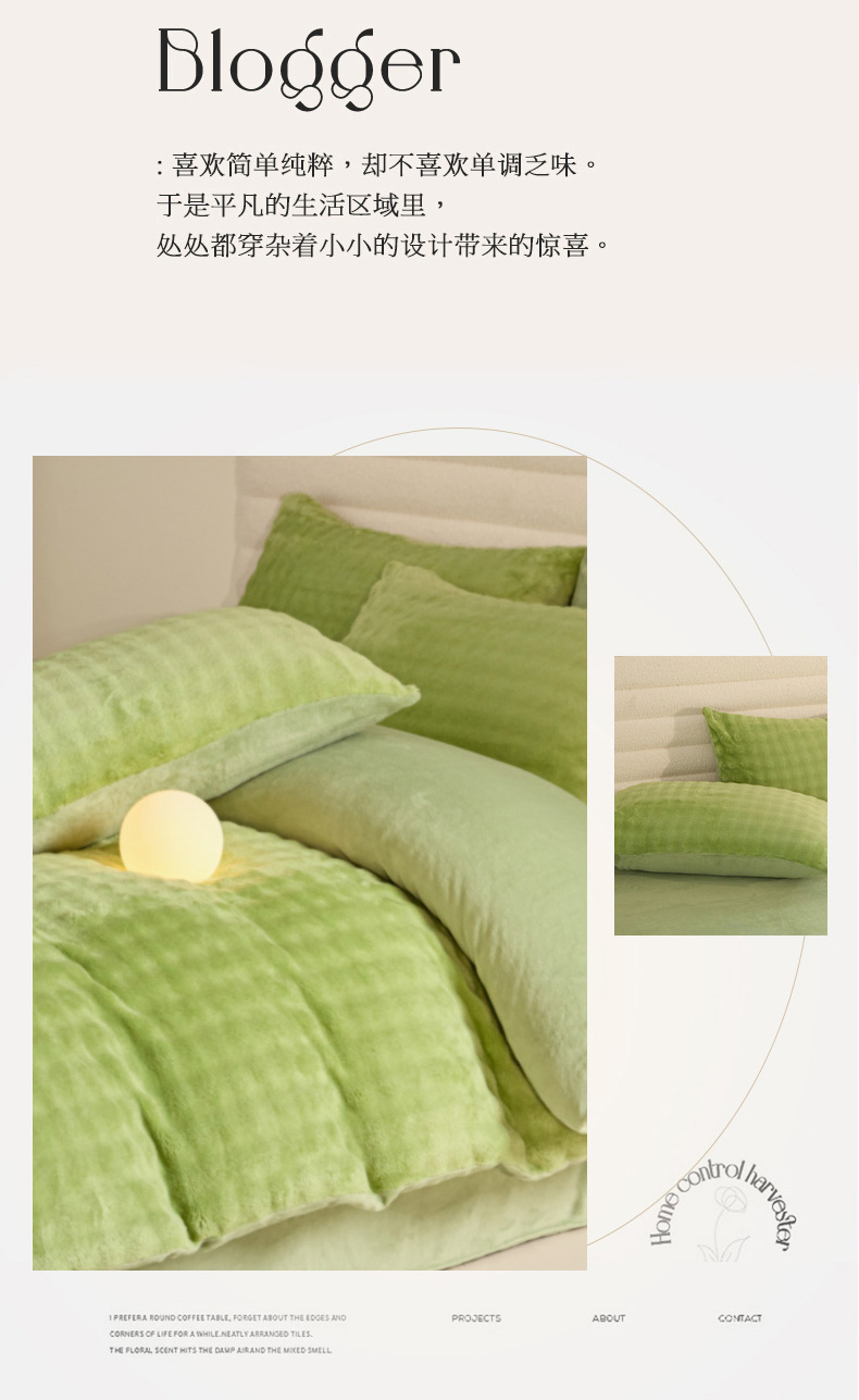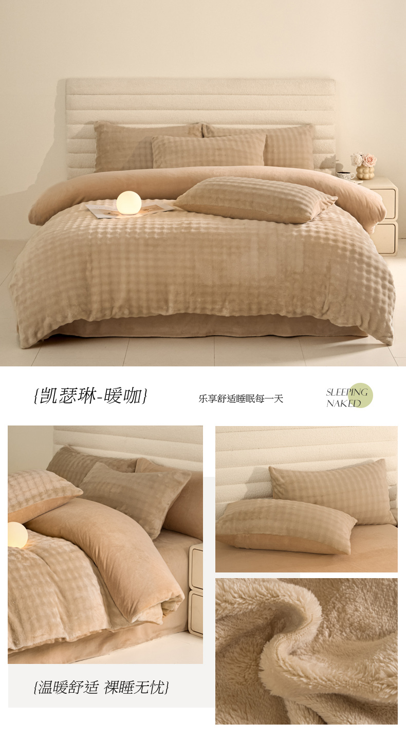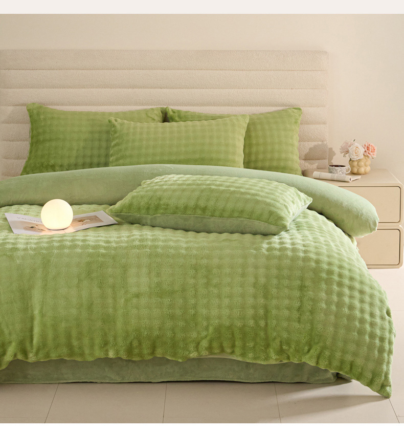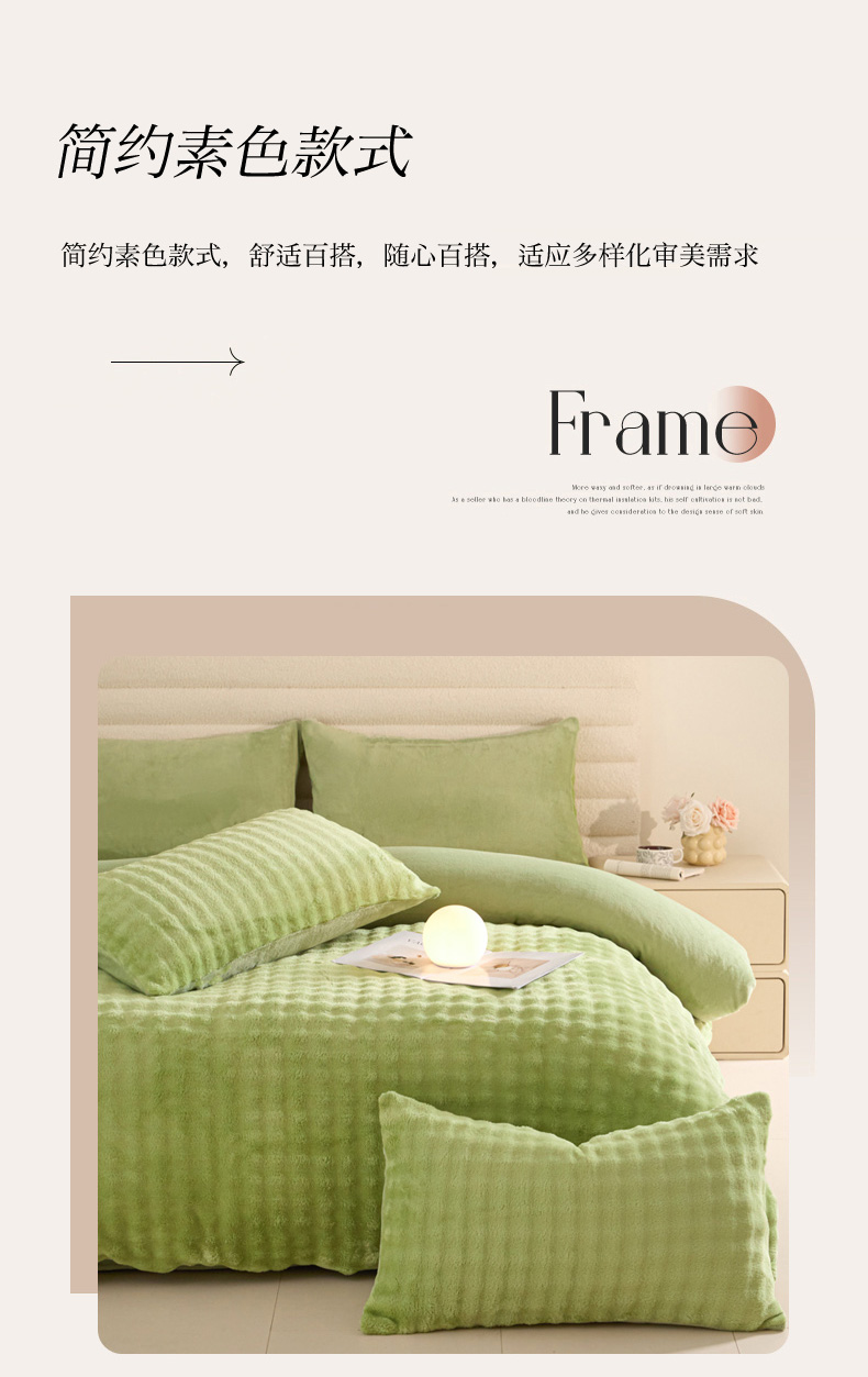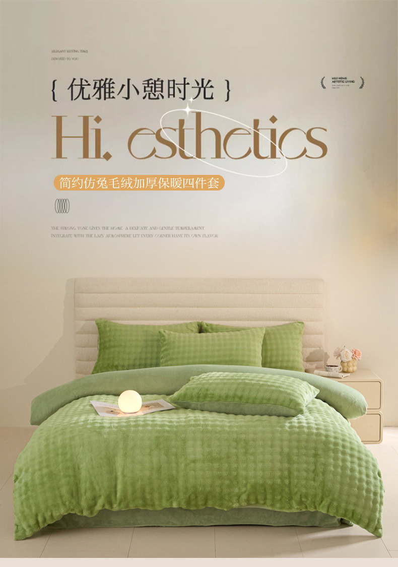 商品名称:眠博士 2025新款兔绒牛奶绒加厚保暖四件套-凯瑟琳场景一 凯瑟琳-暖绿
