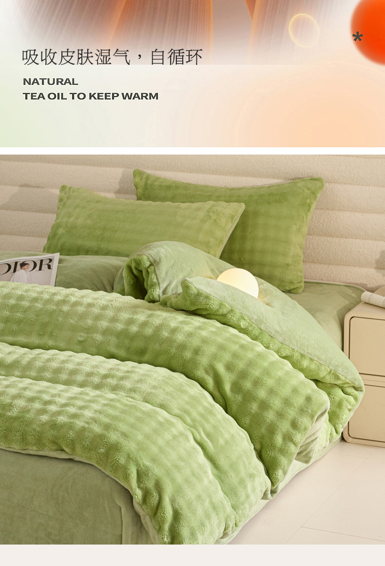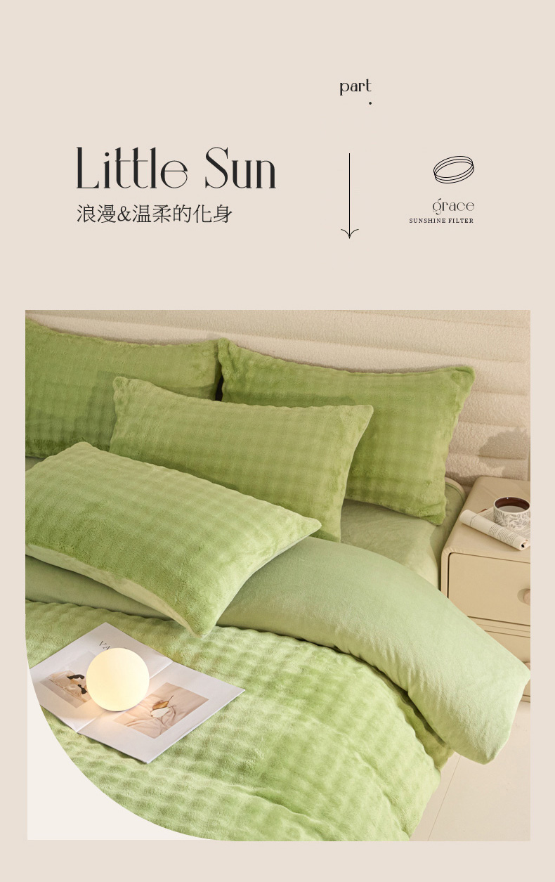 眠博士 2025新款兔绒牛奶绒加厚保暖四件套-凯瑟琳场景一 凯瑟琳-暖绿