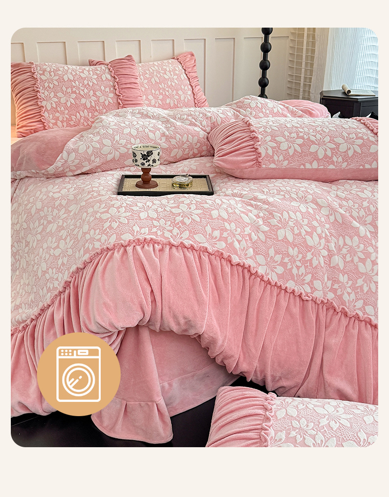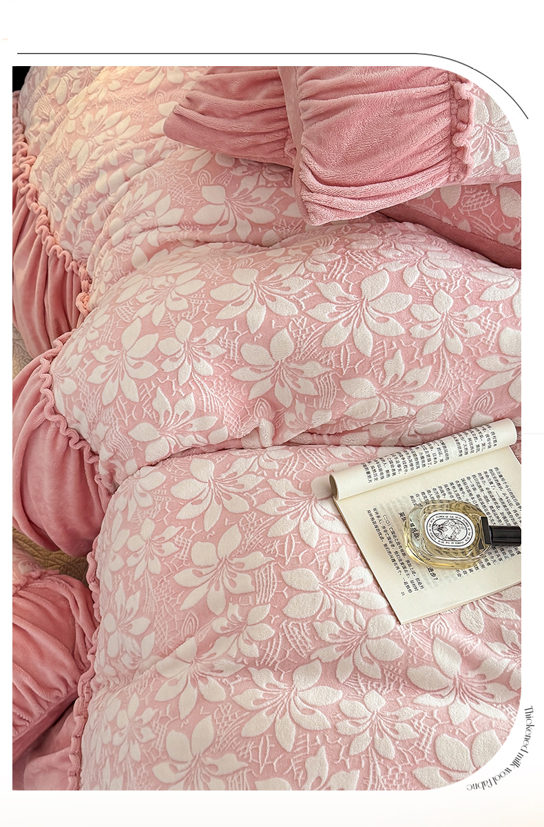(总)【苏东来】2025高端加厚保暖纯色甜美公主赫本风法式工艺款雕花牛奶绒四件套清新少女婴儿法莱兔绒四件套,蝶恋花,繁花,花香,玫瑰花,一枝花,华尔兹粉,华尔兹卡其,华尔兹水绿,华尔兹天蓝,山茶花,蝴蝶花,梦蝶,如意结,飞舞少女,满天星粉,满天星卡其,满天星水绿