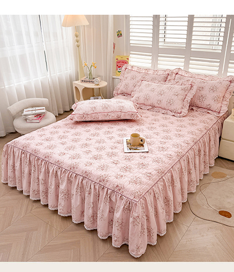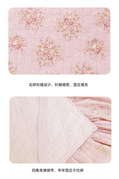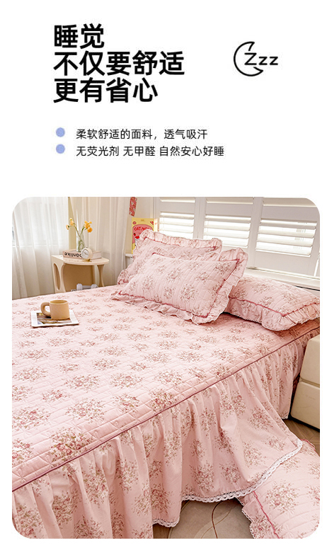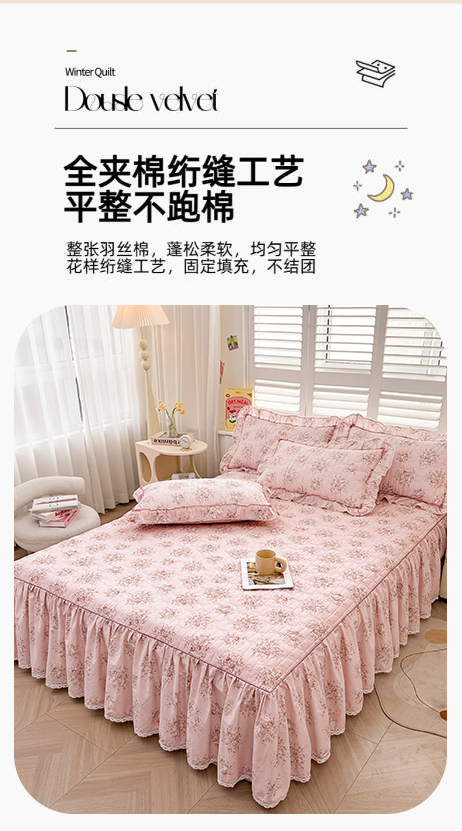 • 91家纺网 家纺一手货源 找家纺 缦彩 2025新款韩版100%全棉公主风夹棉床裙纯棉花边加厚床罩单件 蒂芙尼