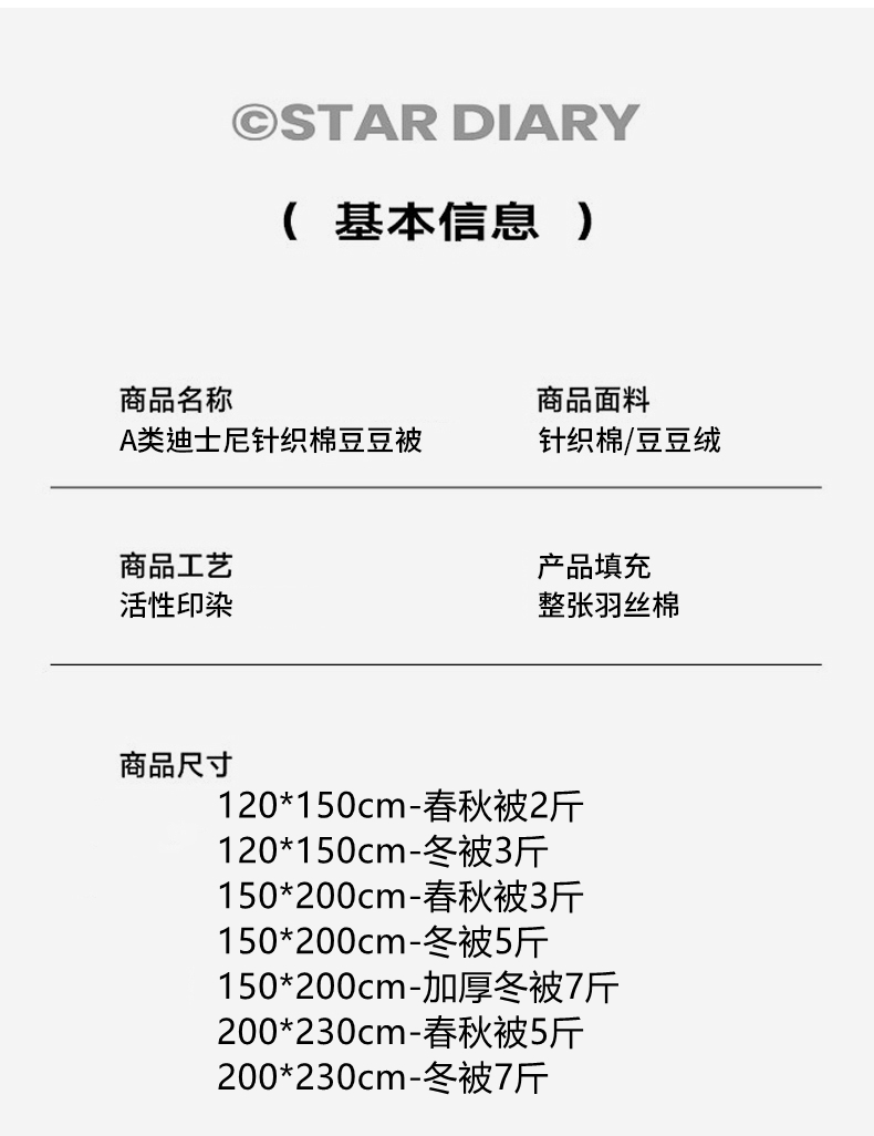 商品名称:(总)晚爱家纺(原晚安家居) 迪士尼豆豆被A类针织棉儿童大豆被春秋冬被子被芯豆豆绒