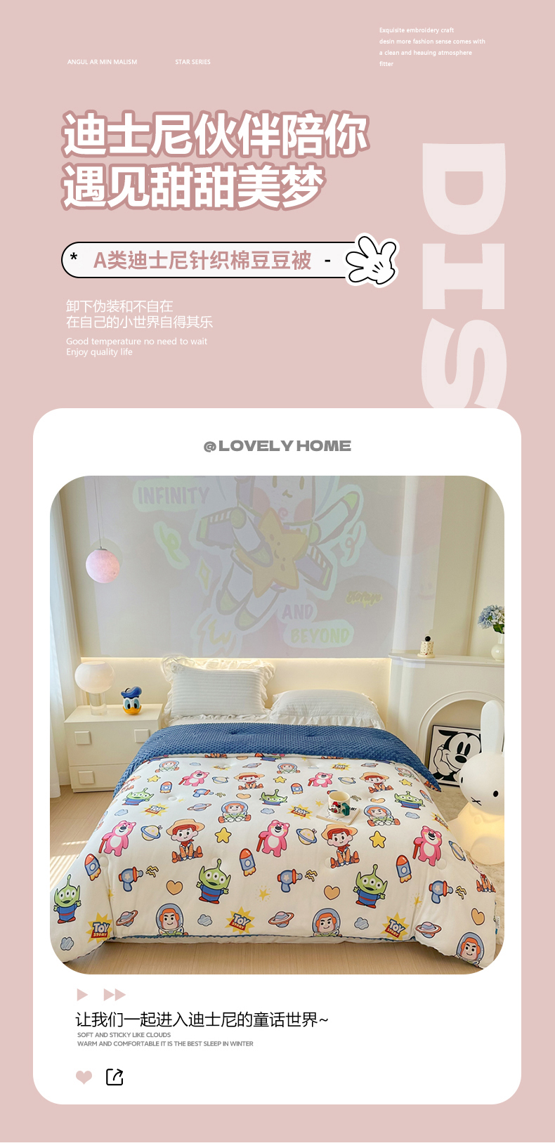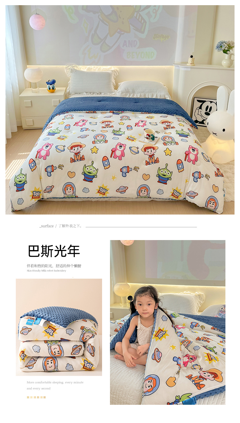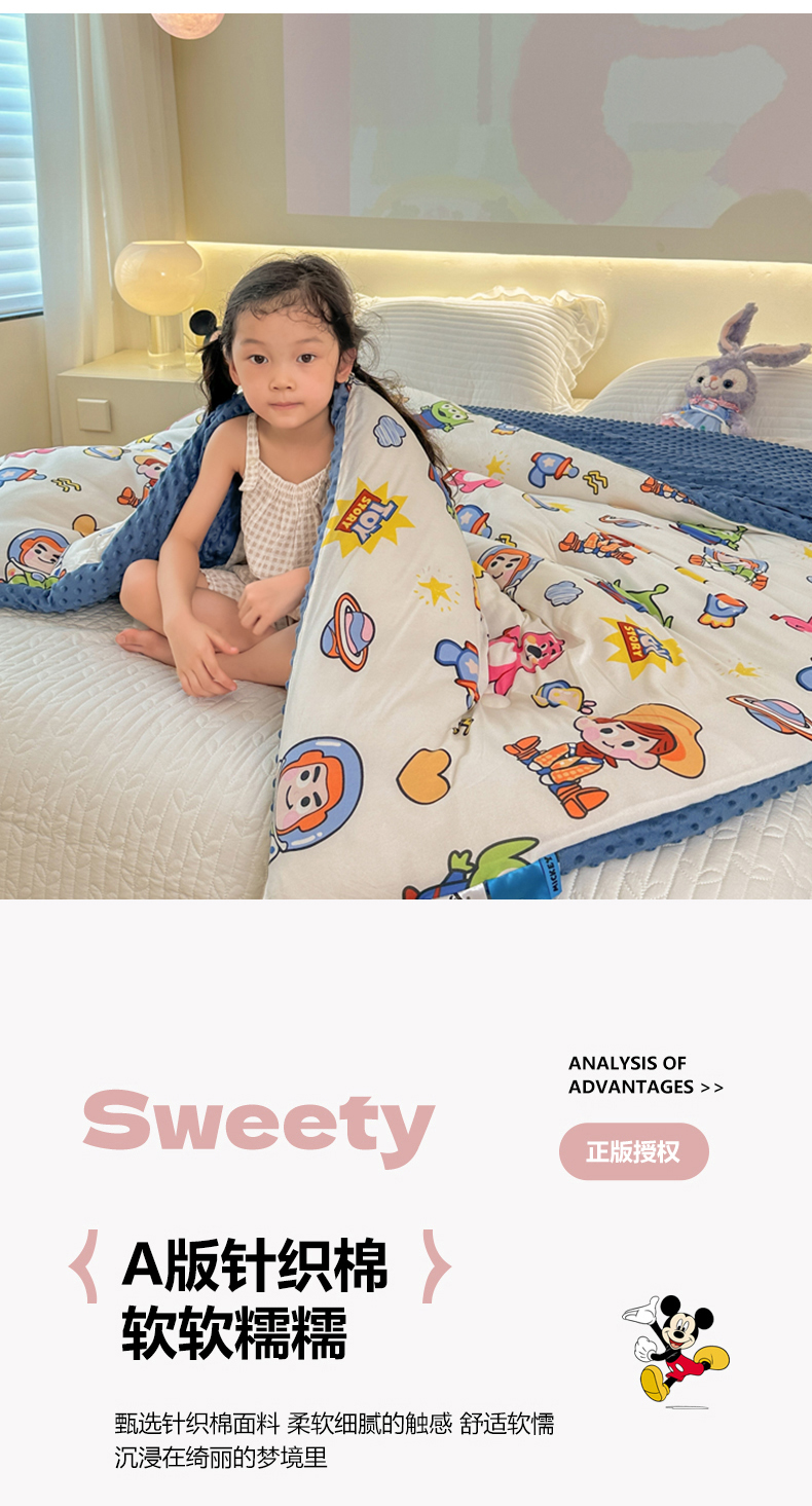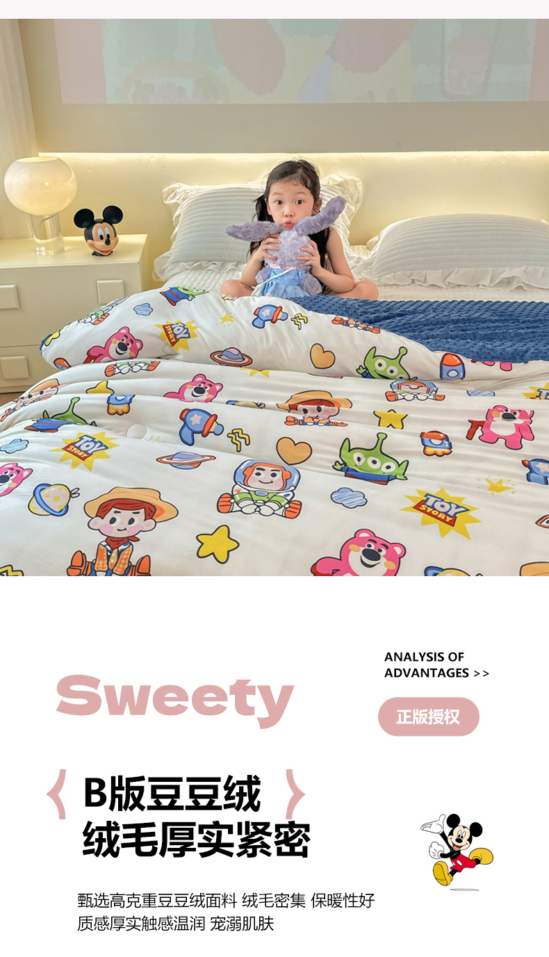 (总)晚爱家纺(原晚安家居) 迪士尼豆豆被A类针织棉儿童大豆被春秋冬被子被芯豆豆绒,巴斯光年,粉色米妮,开心维尼,蓝色米奇,郁金香黛丝鸭,草莓熊,灰色米奇,圣诞米奇,维尼大家族