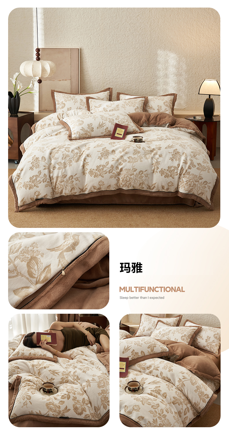 • 91家纺网 家纺一手货源 找家纺 子由家居 2025新款230g牛奶绒染色雕花可拆洗被套冬被 雕花被套-海棠