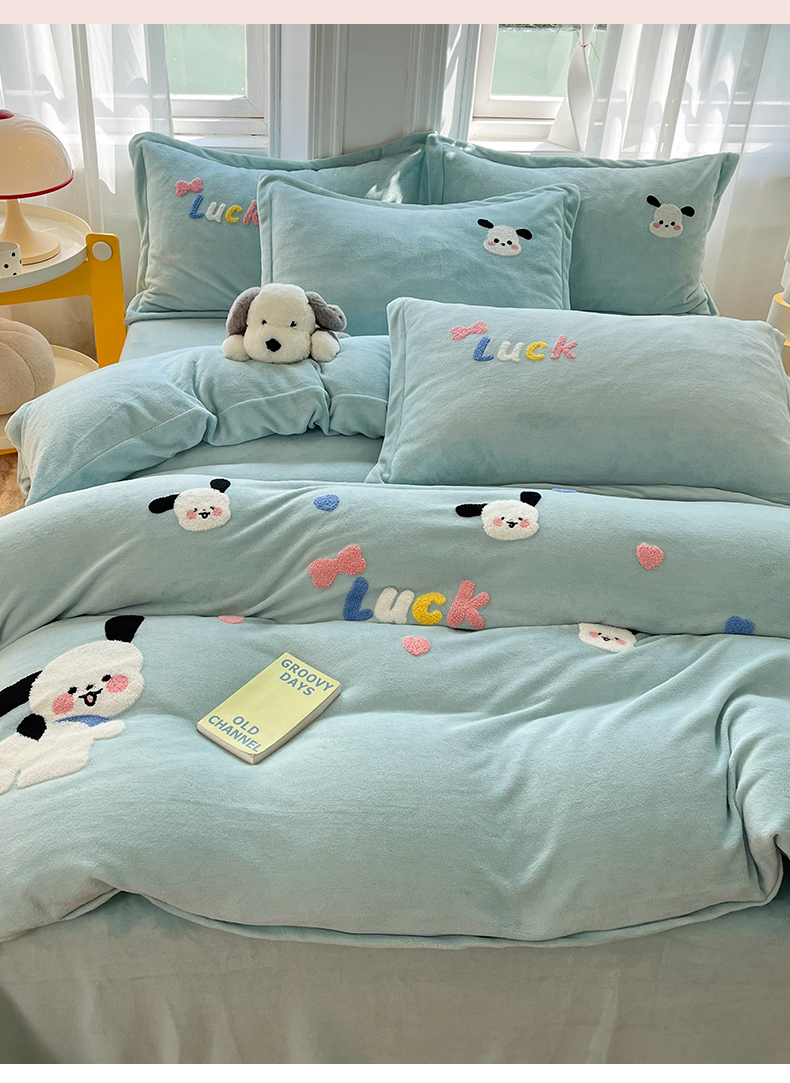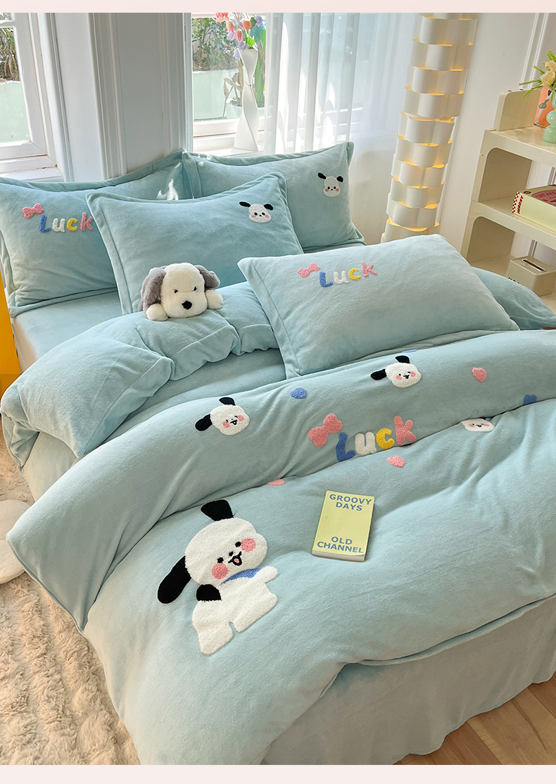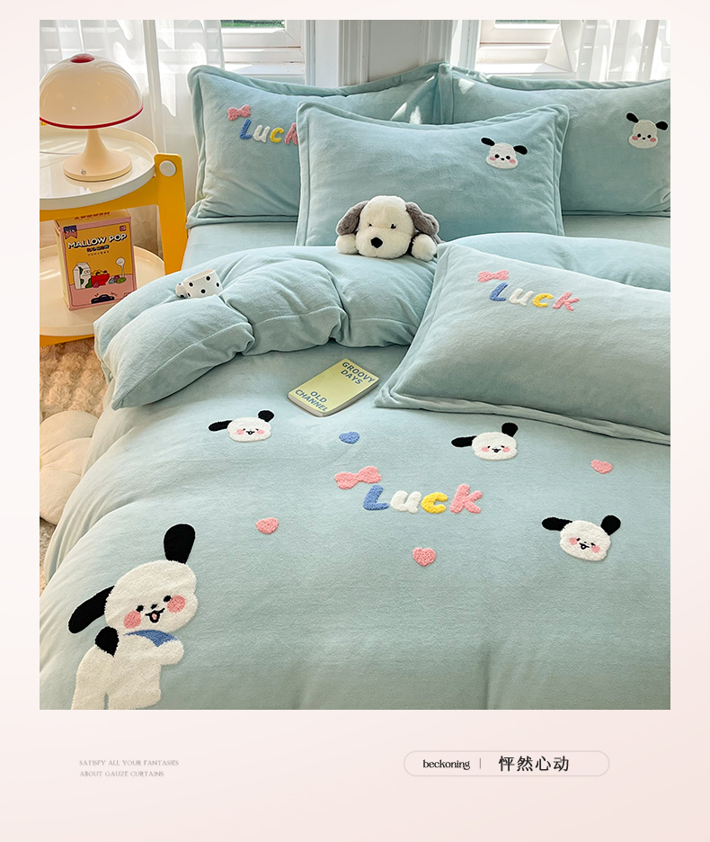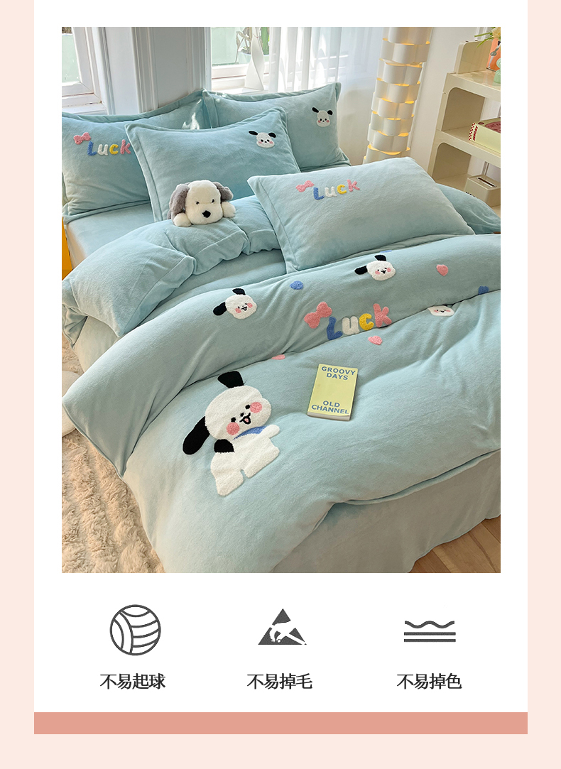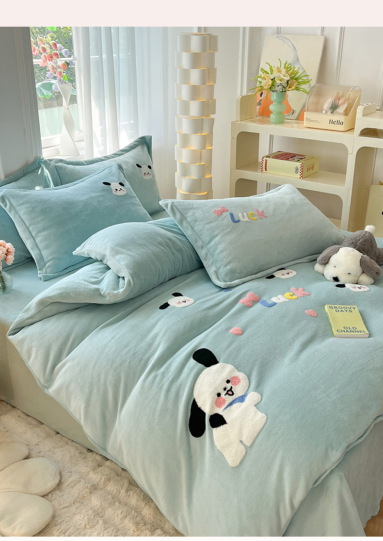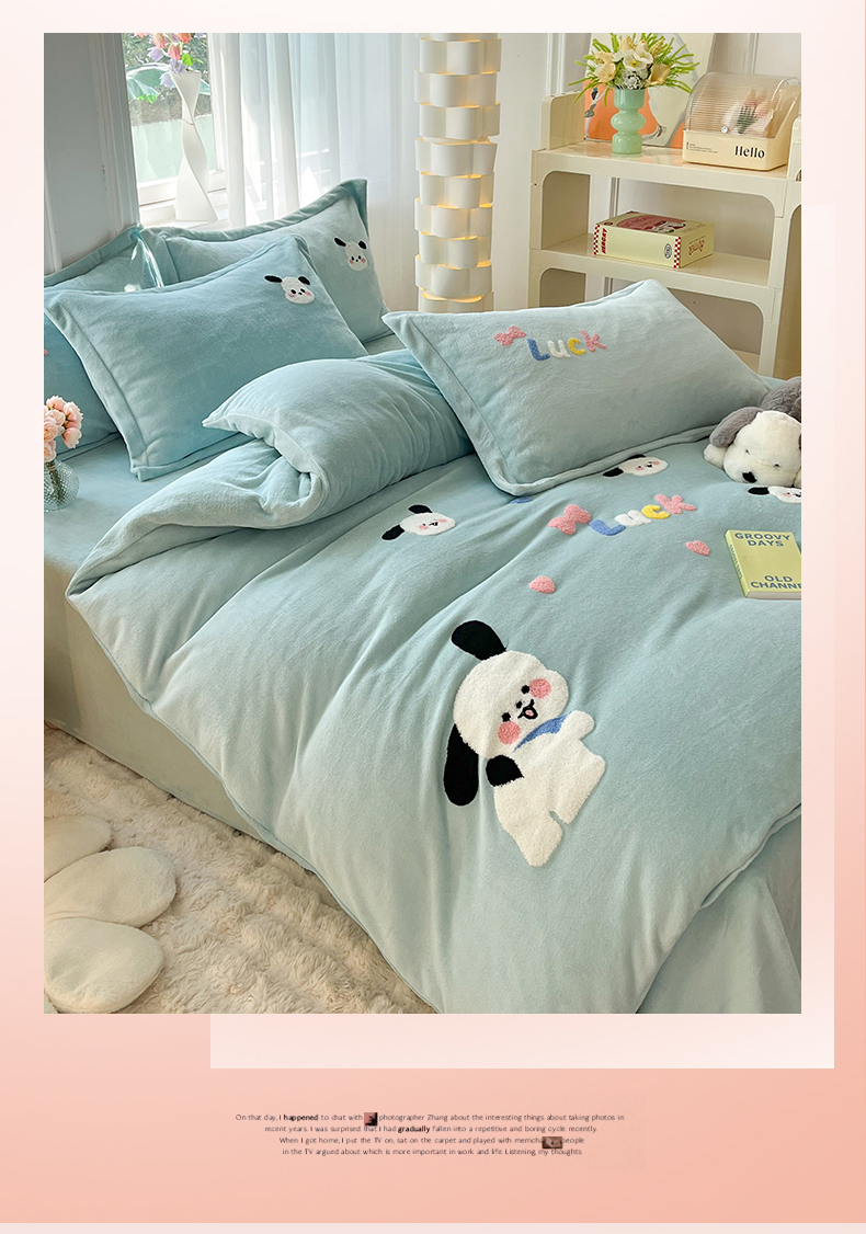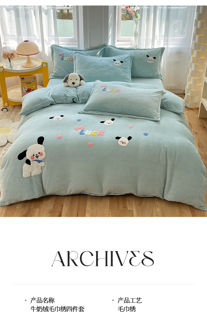 当前位置: 91家纺网 > 商品网购 > 床品套件 > 四件套 > 牛奶绒四件套 > 雨菲家纺 2025新款高克重加厚简约毛巾绣花牛奶绒四件套 牛奶绒调皮狗绿