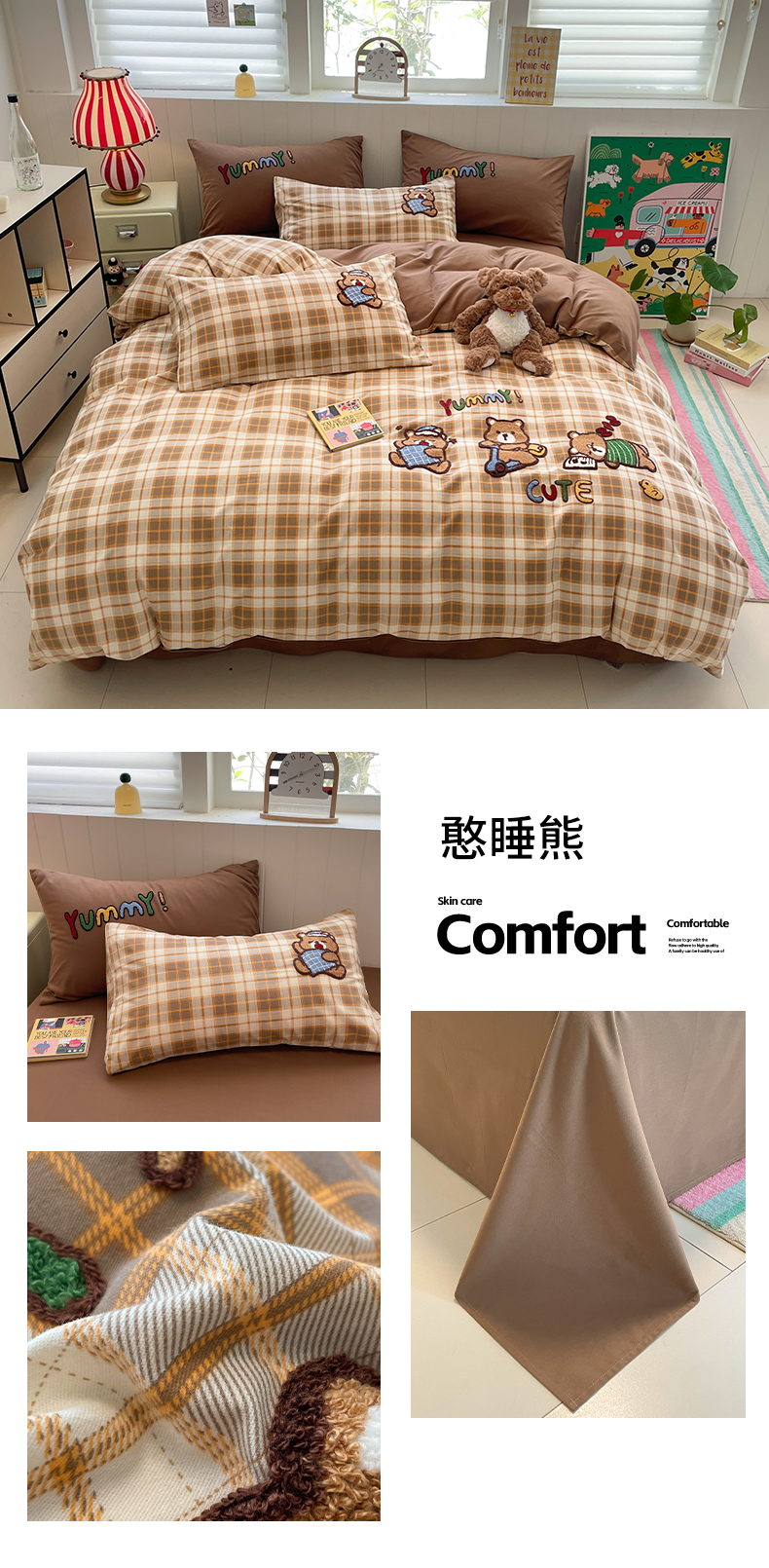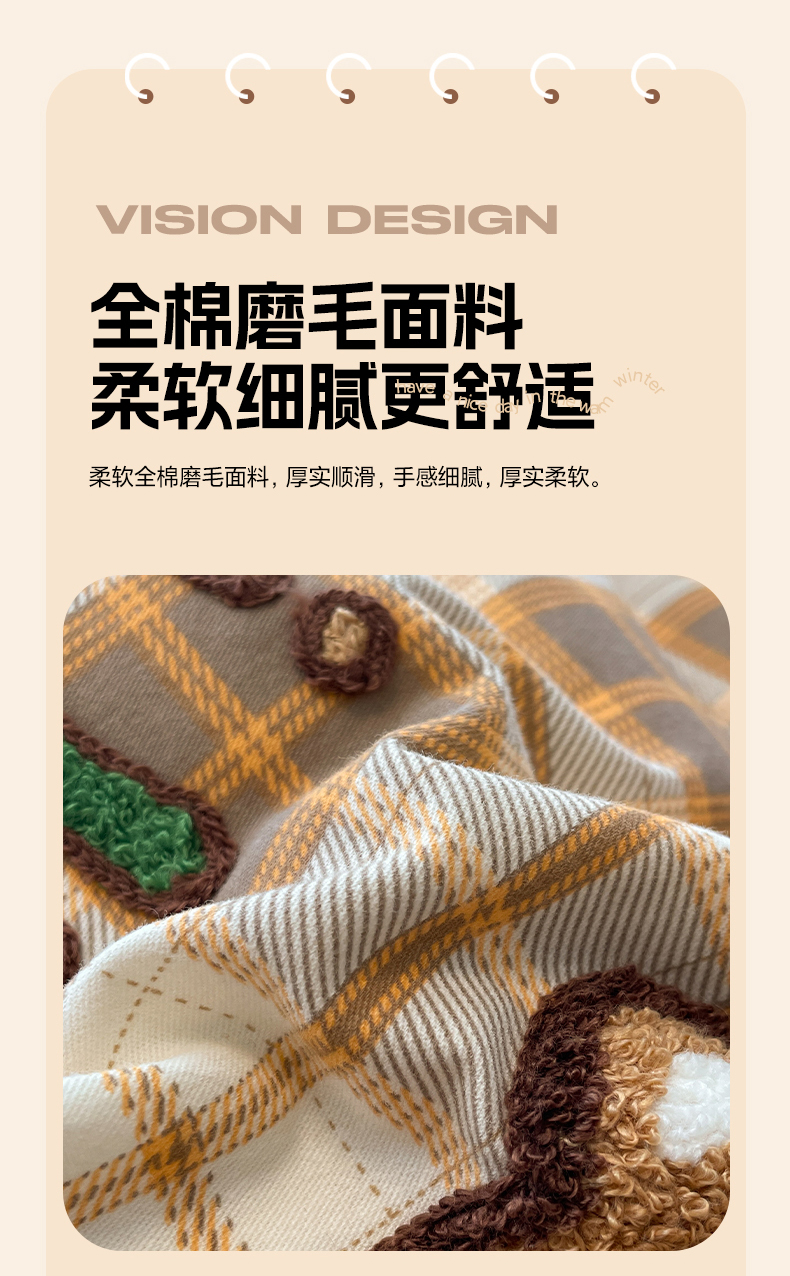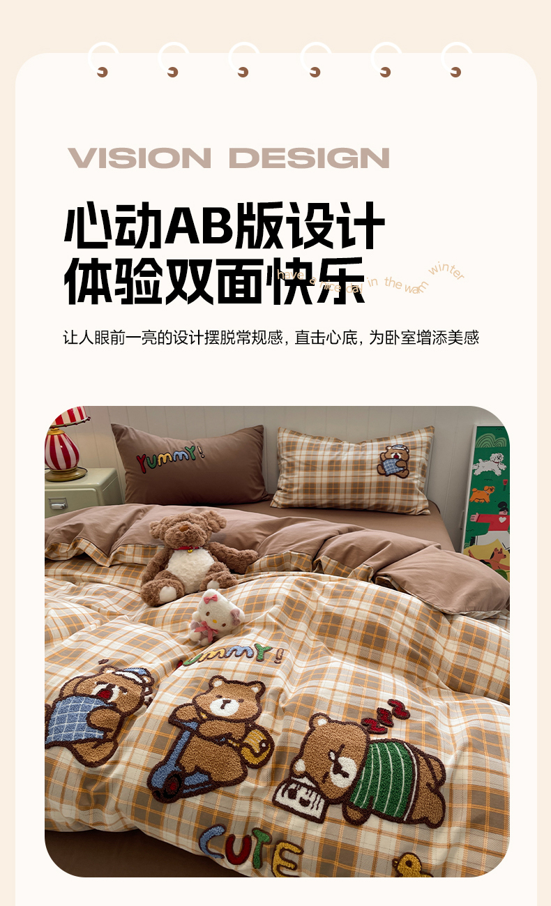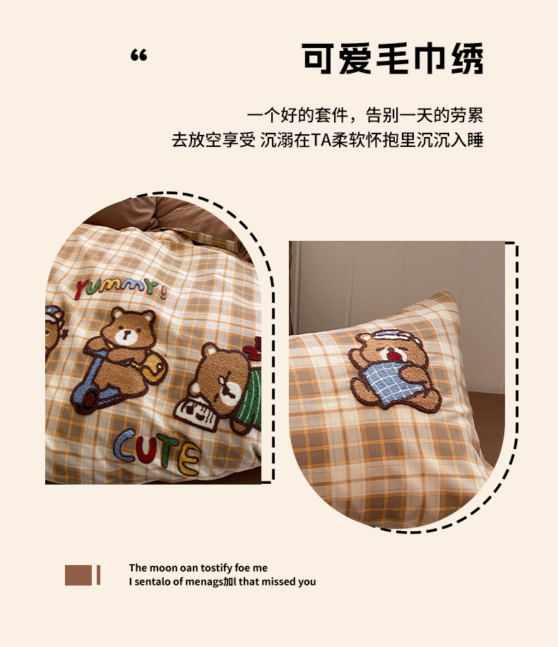 当前位置: 91家纺网 > 商品网购 > 床品套件 > 四件套 > 普通磨毛四件套 > 蓝邻家纺 2025新款全棉磨毛卡通刺绣款四件套--毛巾绣系列 憨睡熊