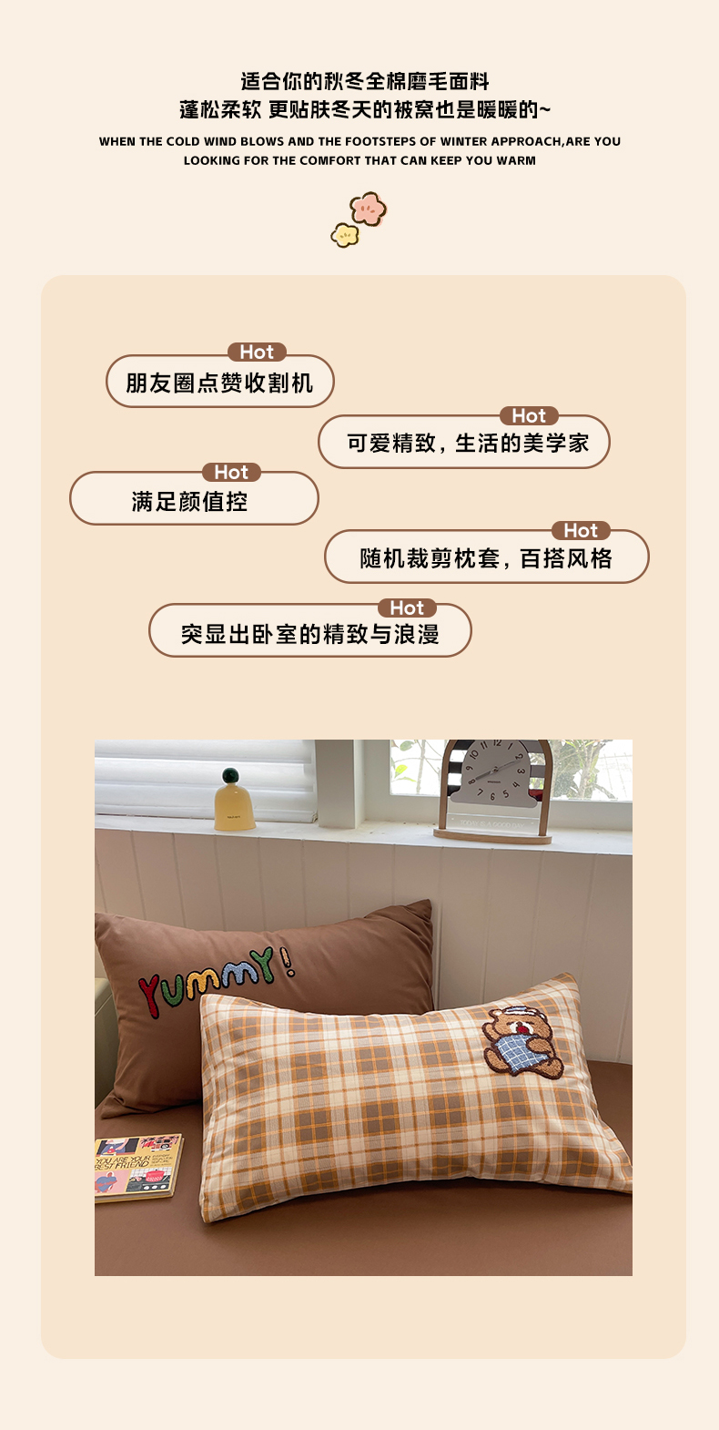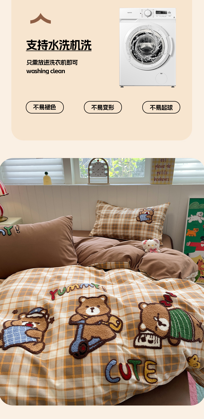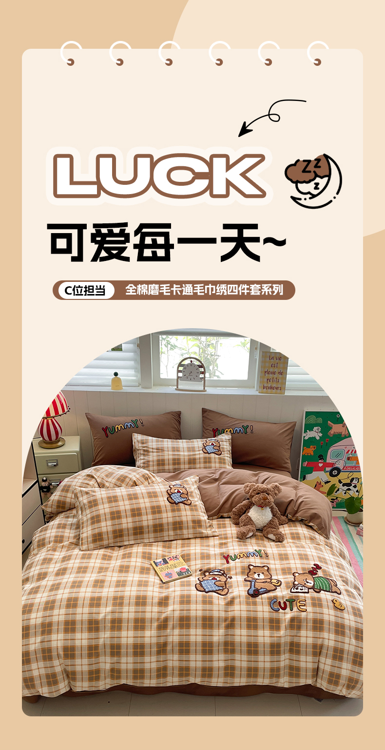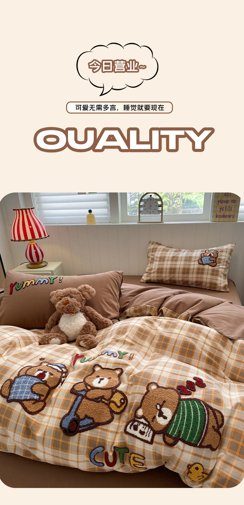 当前位置: 91家纺网 > 商品网购 > 床品套件 > 四件套 > 普通磨毛四件套 > 蓝邻家纺 2025新款全棉磨毛卡通刺绣款四件套--毛巾绣系列 憨睡熊
