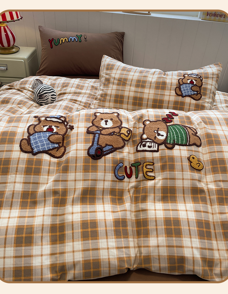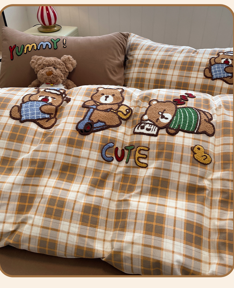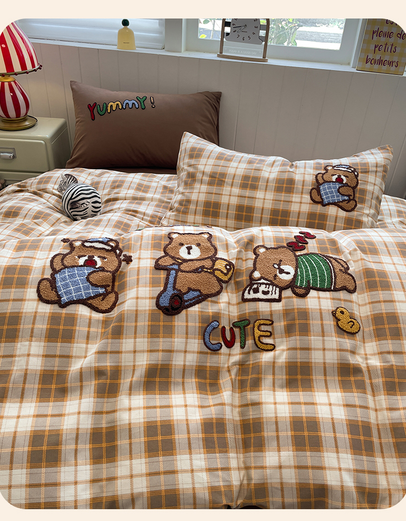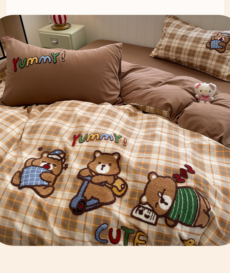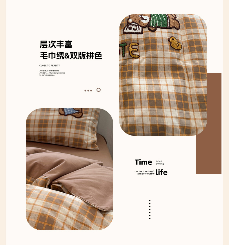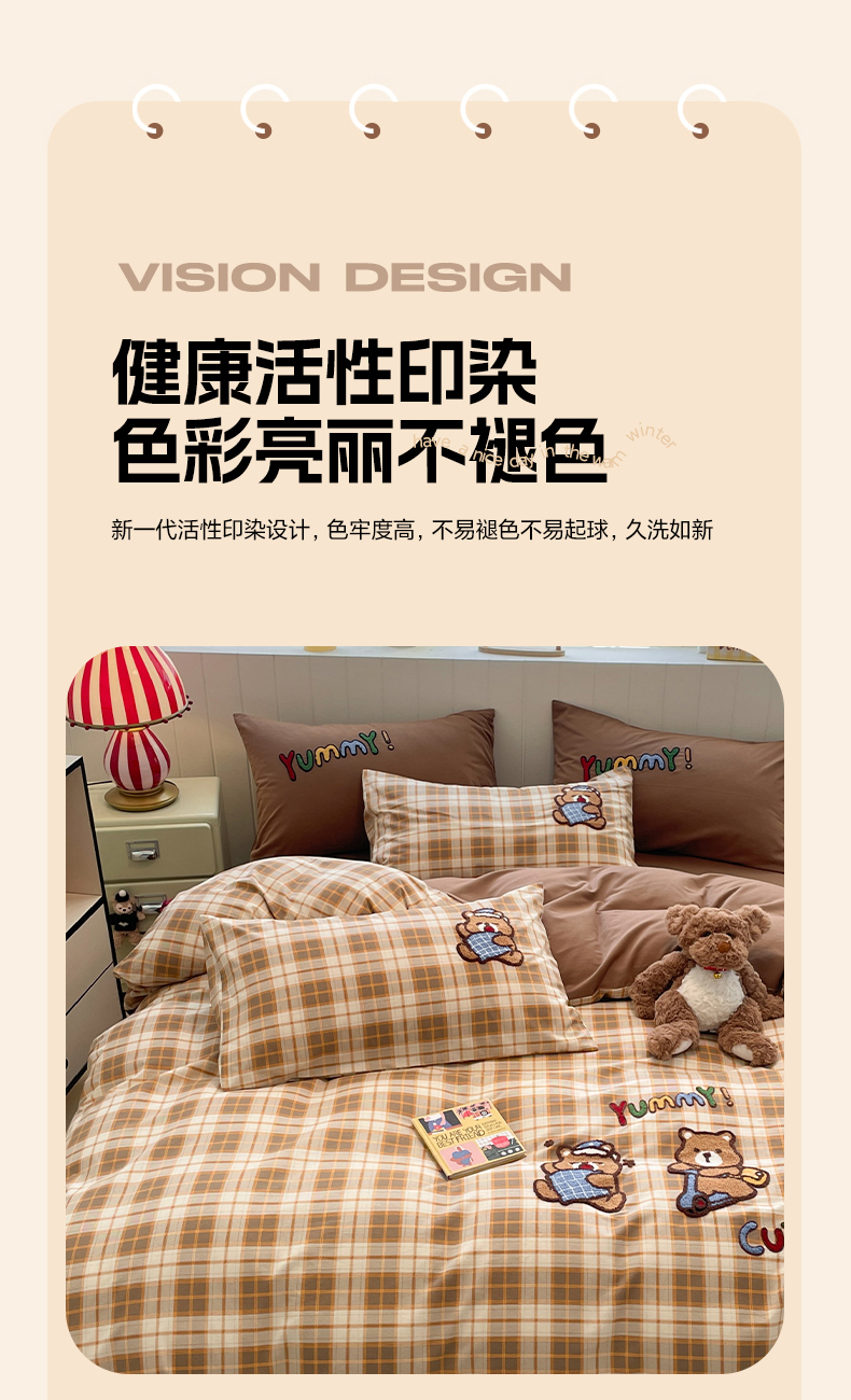 当前位置: 91家纺网 > 商品网购 > 床品套件 > 四件套 > 普通磨毛四件套 > 蓝邻家纺 2025新款全棉磨毛卡通刺绣款四件套--毛巾绣系列 憨睡熊