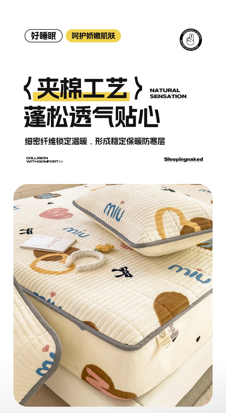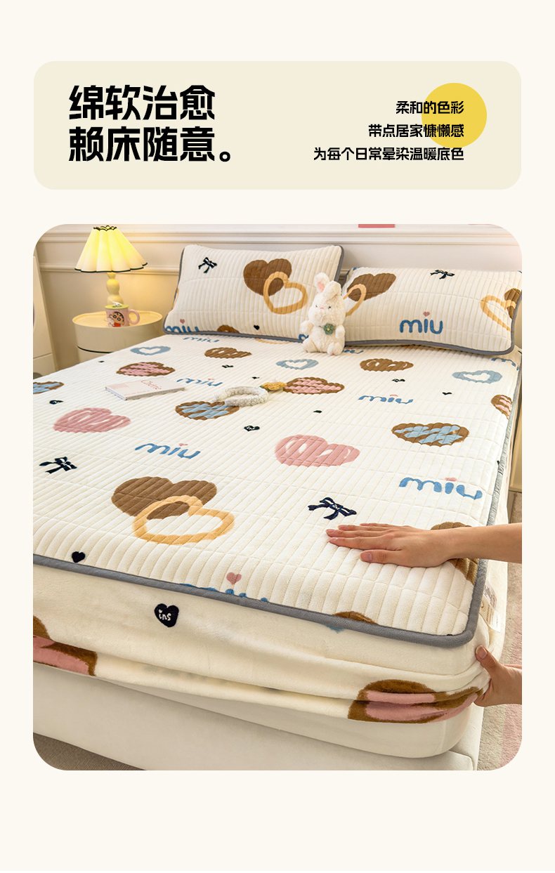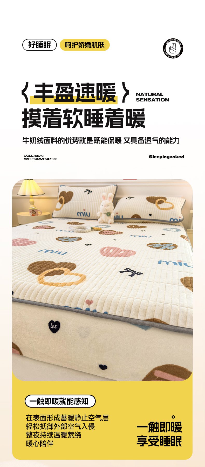 (总)摩妮卡 2025新款加厚保暖牛奶绒夹棉绣花床垫三件套,呆呆熊-蓝,呆呆熊-黄,呆呆熊-咖,Kitty猫-白,Kitty猫-粉,Kitty猫-紫