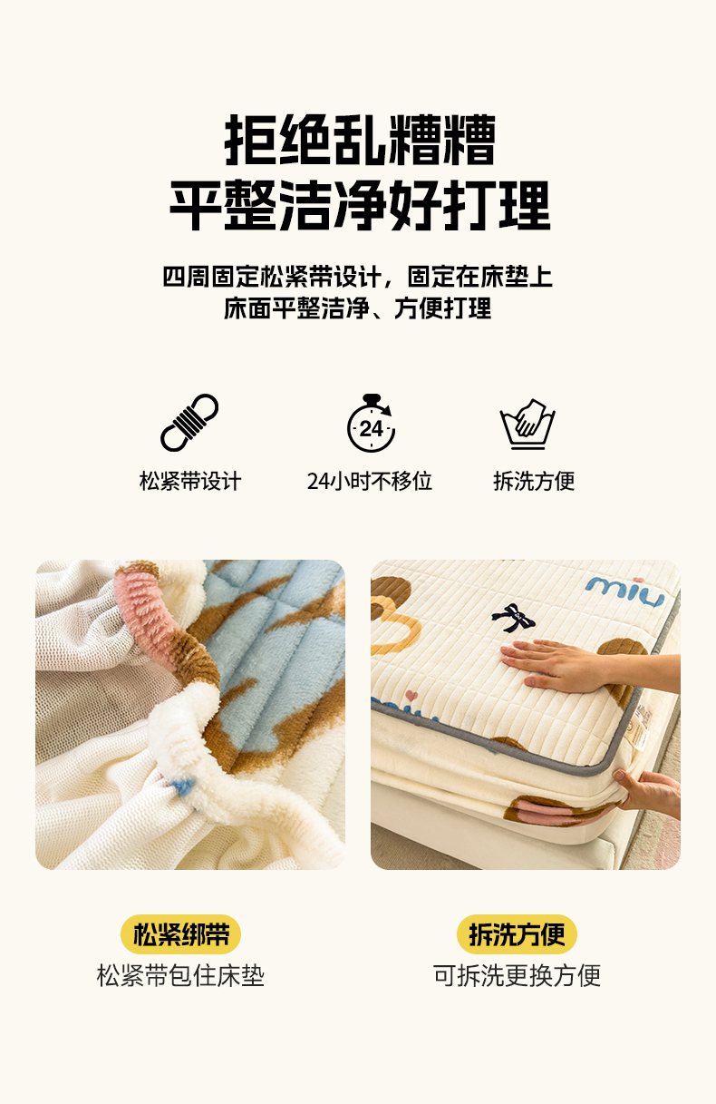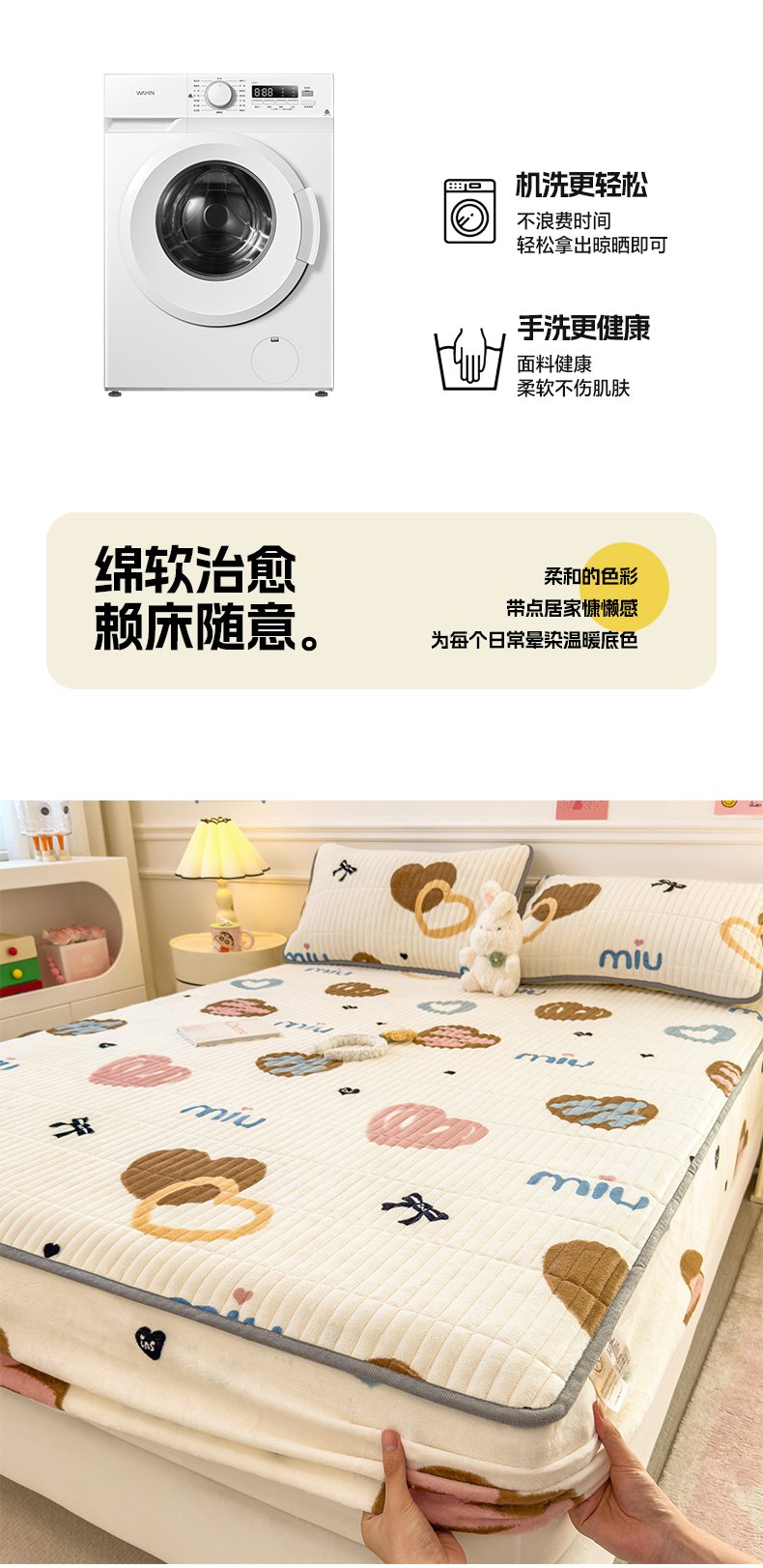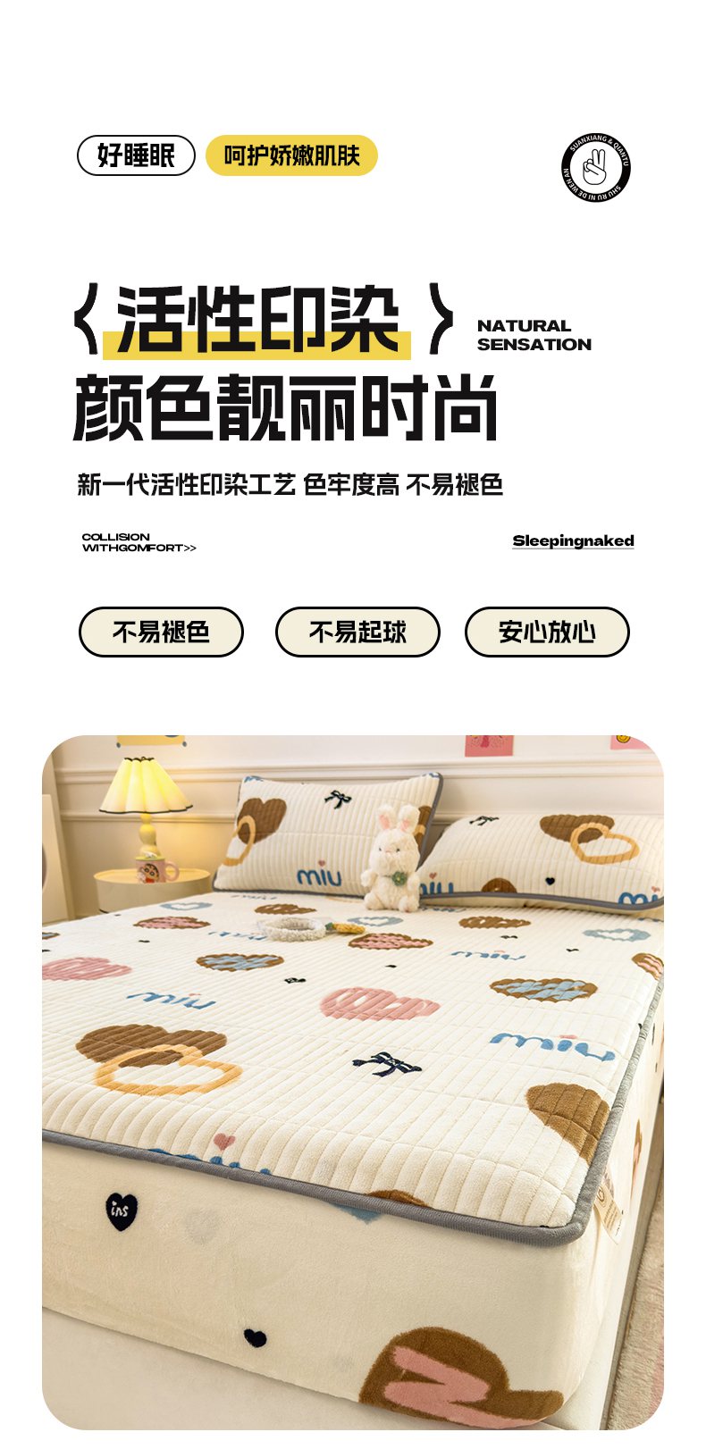 (总)摩妮卡 2025新款加厚保暖牛奶绒夹棉绣花床垫三件套,呆呆熊-蓝,呆呆熊-黄,呆呆熊-咖,Kitty猫-白,Kitty猫-粉,Kitty猫-紫