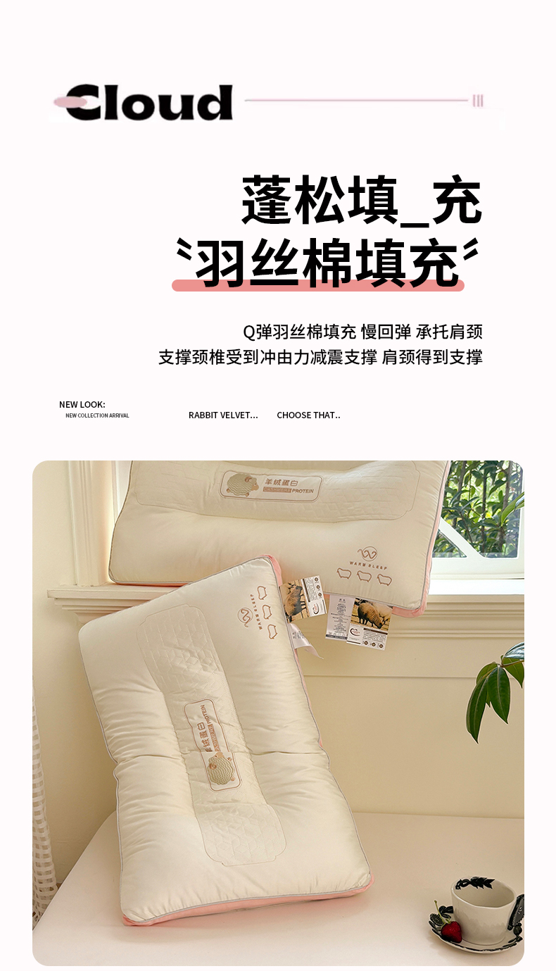 商品名称:青泽家纺 2025新款羊绒蛋白枕头枕芯 羊绒蛋白枕芯 低枕一对装