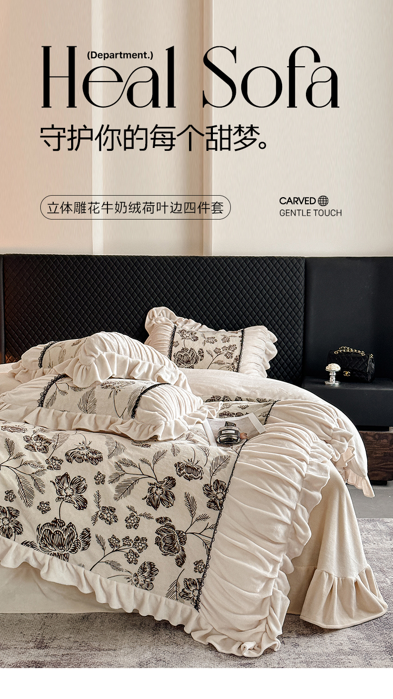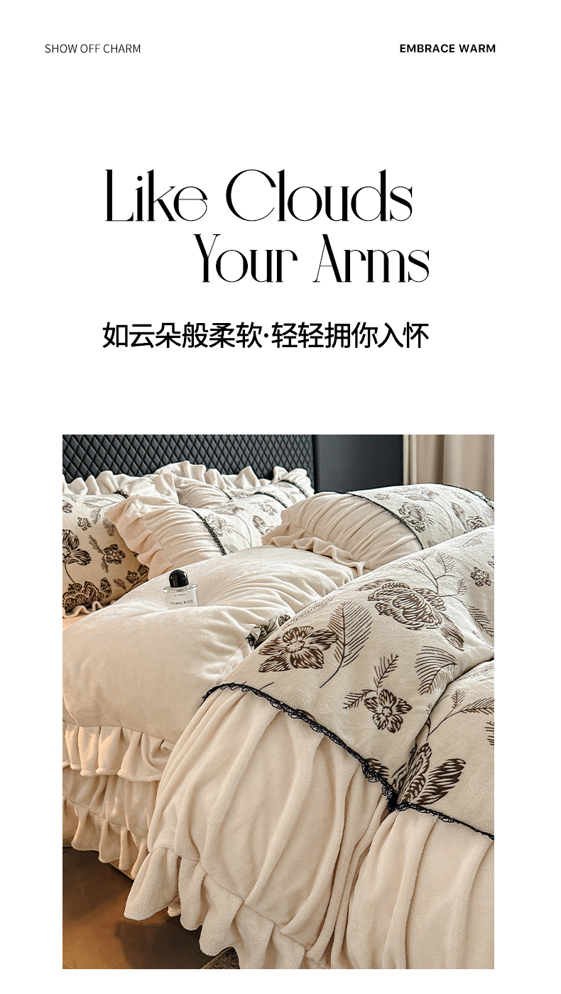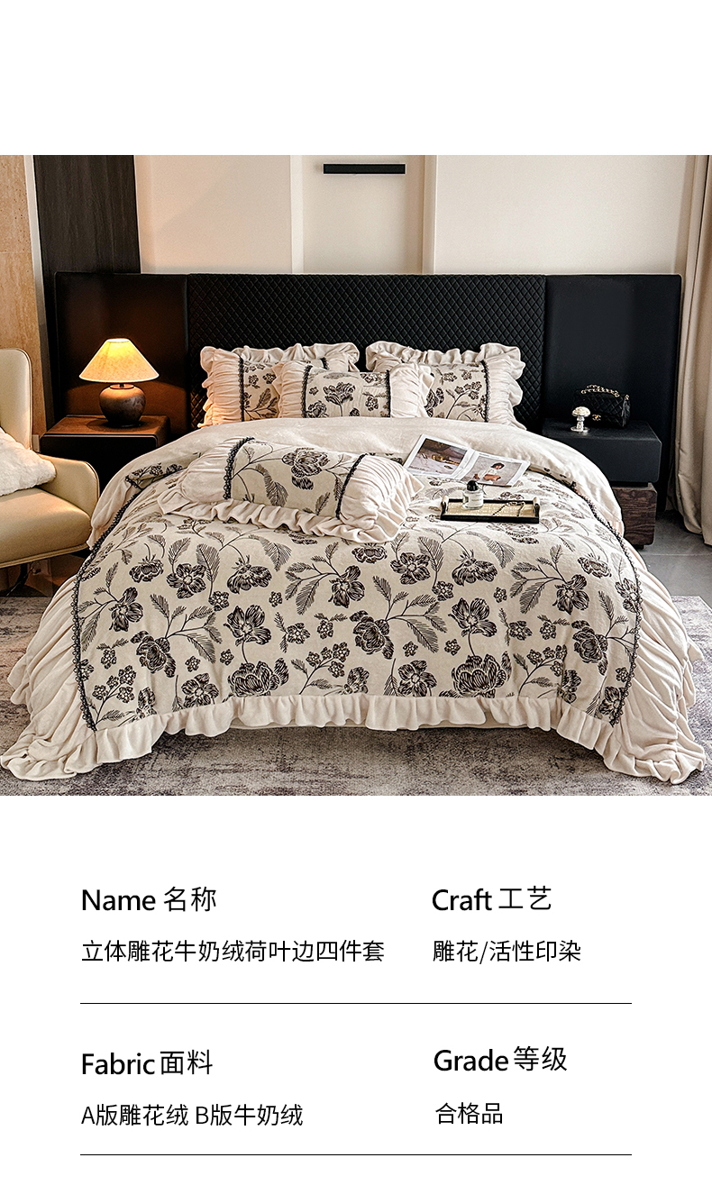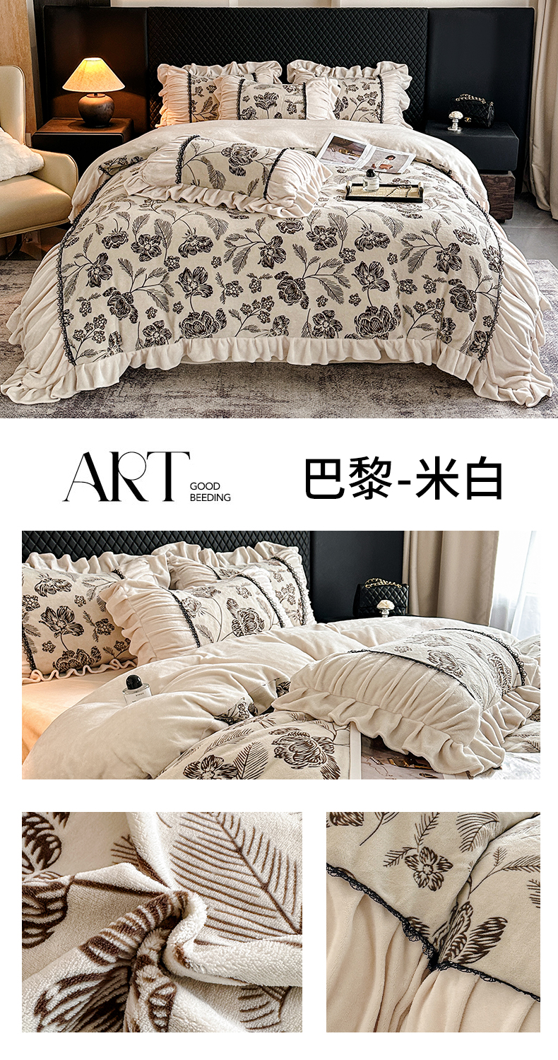 当前位置: 91家纺网 > 商品网购 > 床品套件 > 四件套 > 牛奶绒四件套 > 极简 2025新款立体雕花牛奶绒荷叶边四件套 巴黎-米白