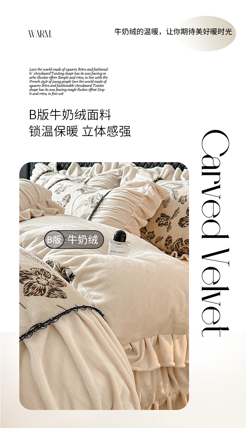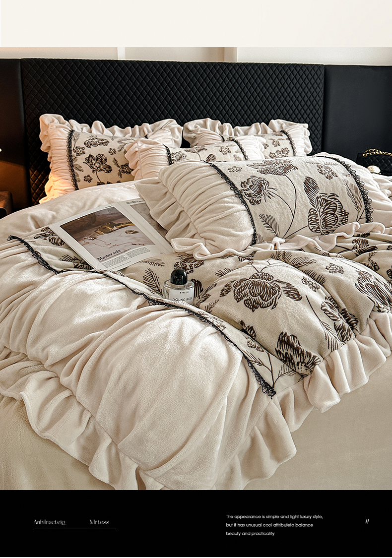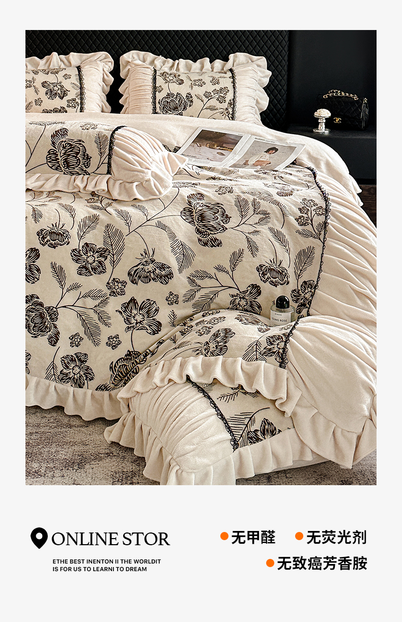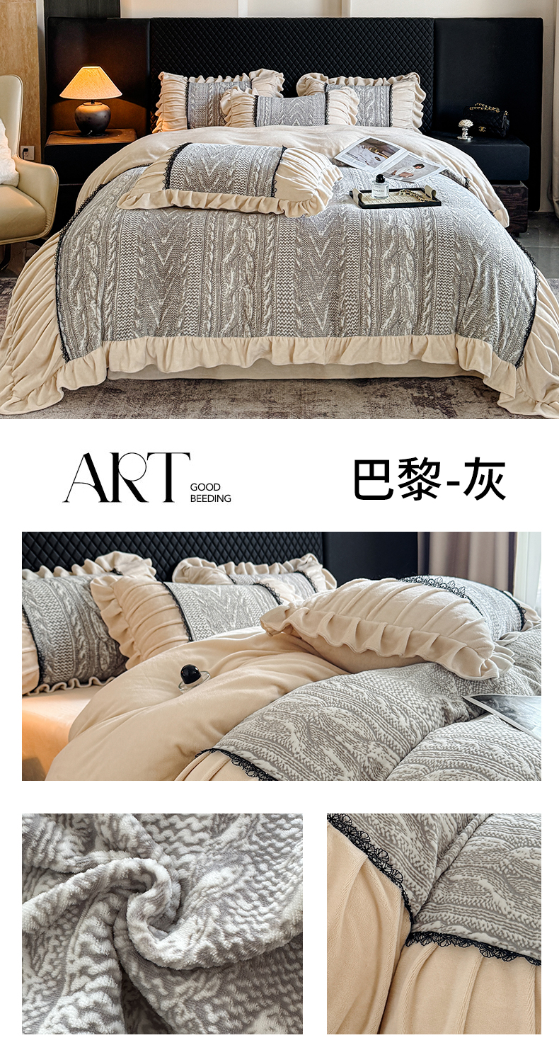 当前位置: 91家纺网 > 商品网购 > 床品套件 > 四件套 > 牛奶绒四件套 > 极简 2025新款立体雕花牛奶绒荷叶边四件套 巴黎-米白