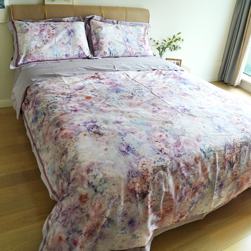 [91家纺网精选] 60s贡缎提花大豆被大豆纤维被,安娜粉,浪漫白