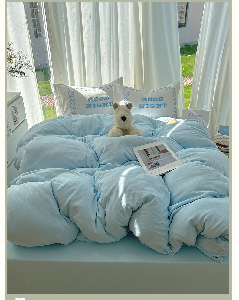 当前位置: 91家纺网 > 商品网购 > 床品套件 > 四件套 > 毛巾绣四件套 > 花伞家居 2025新款毛巾绣水洗棉小红书风四件套(提供买家秀) 晚安蓝