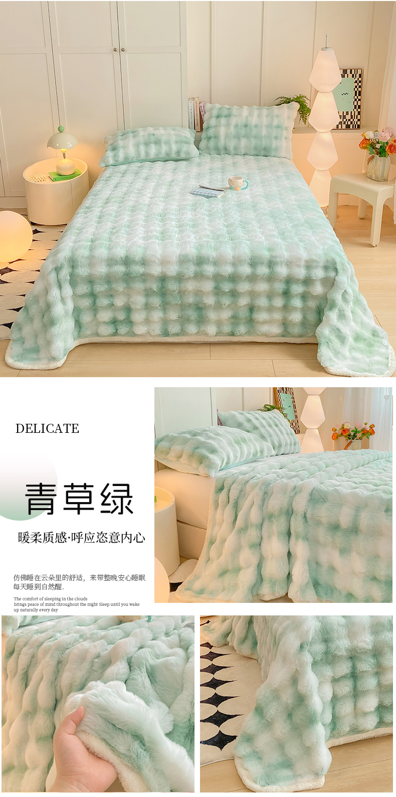 品乐家纺 2025新款秋冬A类高克重300g泡泡兔绒保暖床单单品床单单件床单 炫彩 雾灰紫