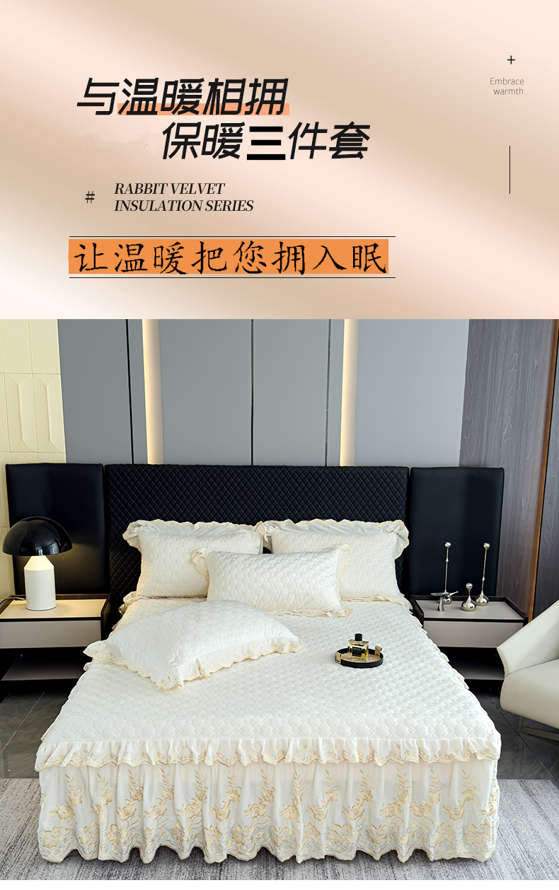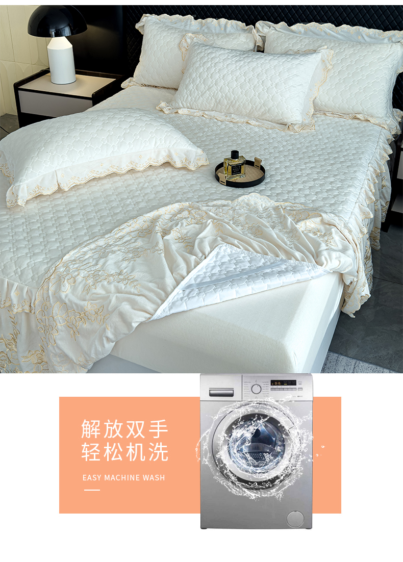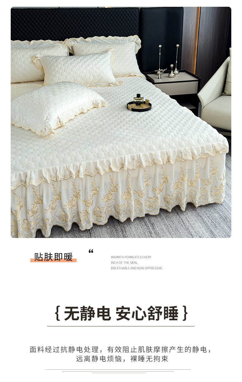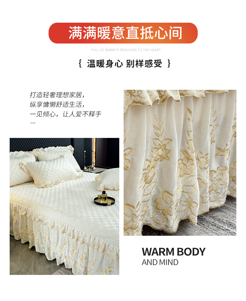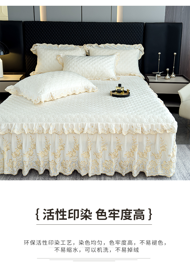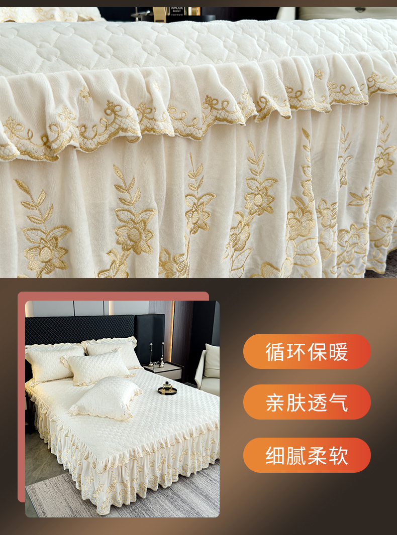 • 91家纺网 家纺一手货源 找家纺 花香四季家纺 2025新款保暖绒绣花宝宝绒床裙系列 牛奶白
