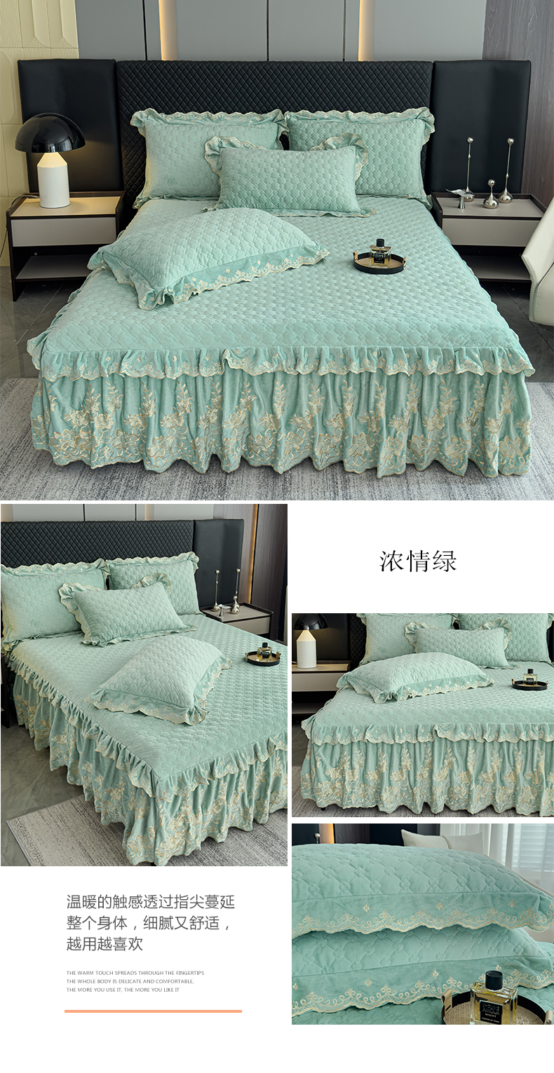 (总)花香四季家纺 2025新款牛奶绒夹棉床裙款四件套-柏林小姐,柏林小姐-白,柏林小姐-粉