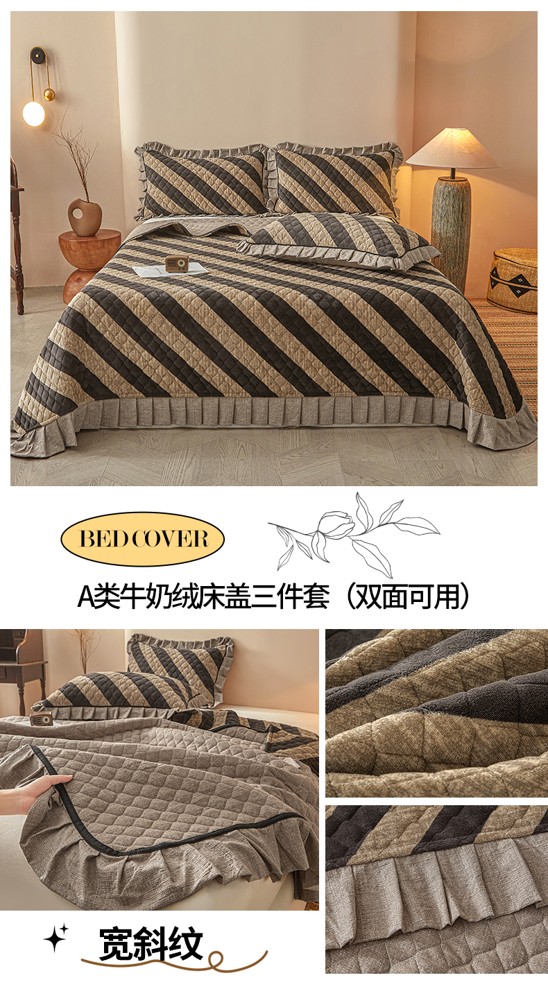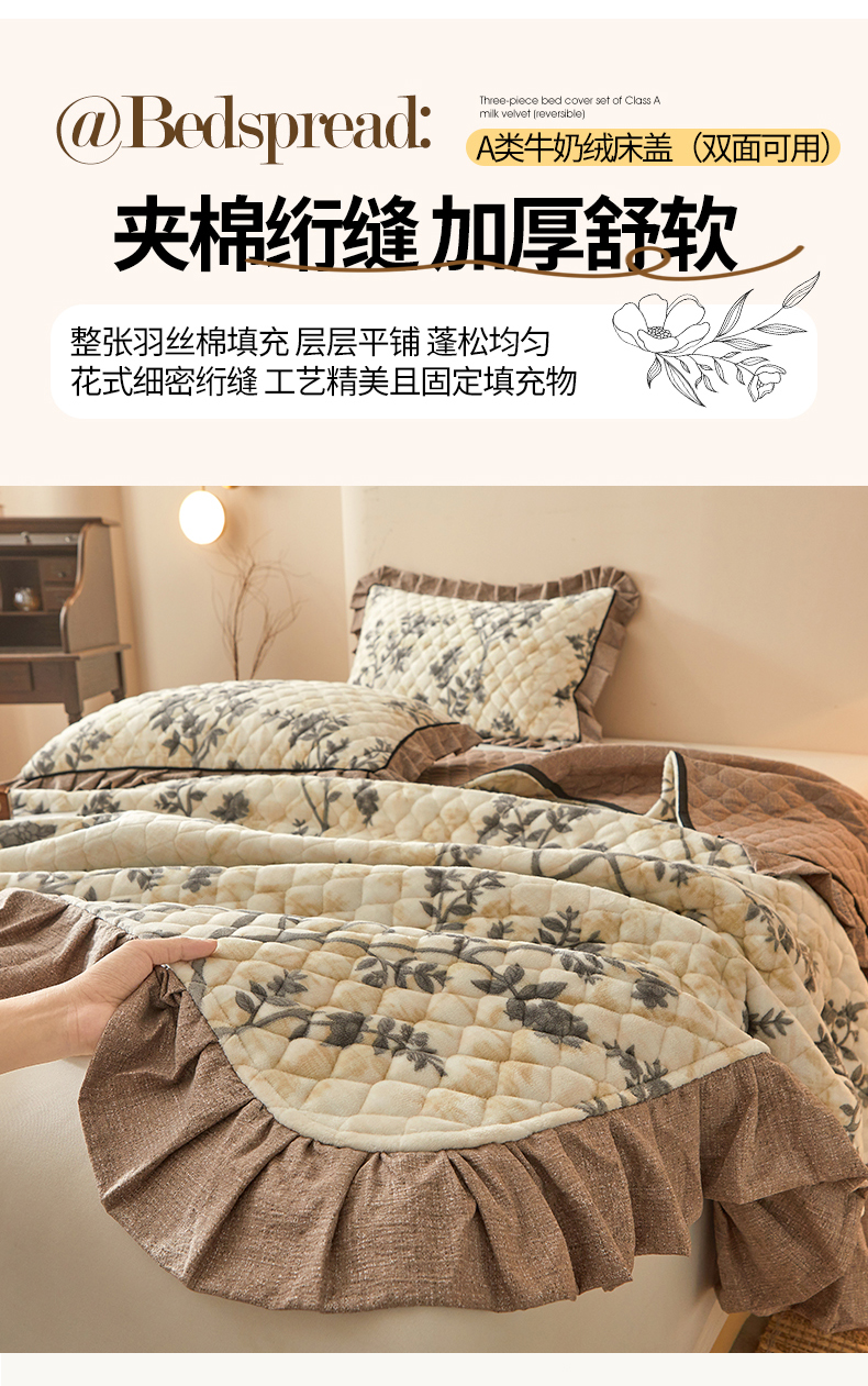 当前位置: 91家纺网 > 商品网购 > 床品套件 > 三件套 > 宜凡家纺 2025新款牛奶绒床盖三件套(双面可用) 蔓叶简枝