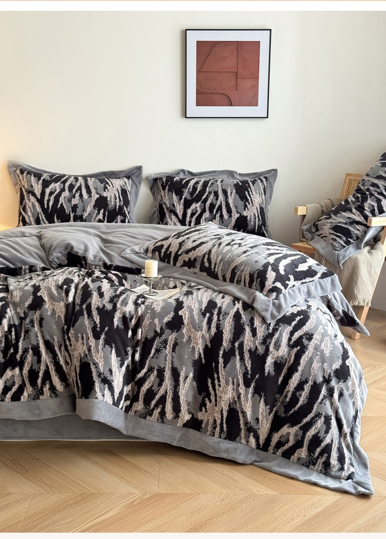 当前位置: 91家纺网 > 商品网购 > 床品套件 > 四件套 > 牛奶绒四件套 > 九花鹿 2025新款宽边雕花绒牛奶绒四件套 宽边雕花-情调(浅灰)