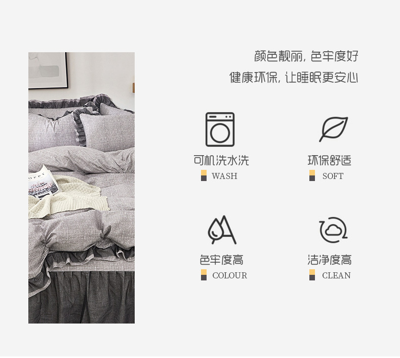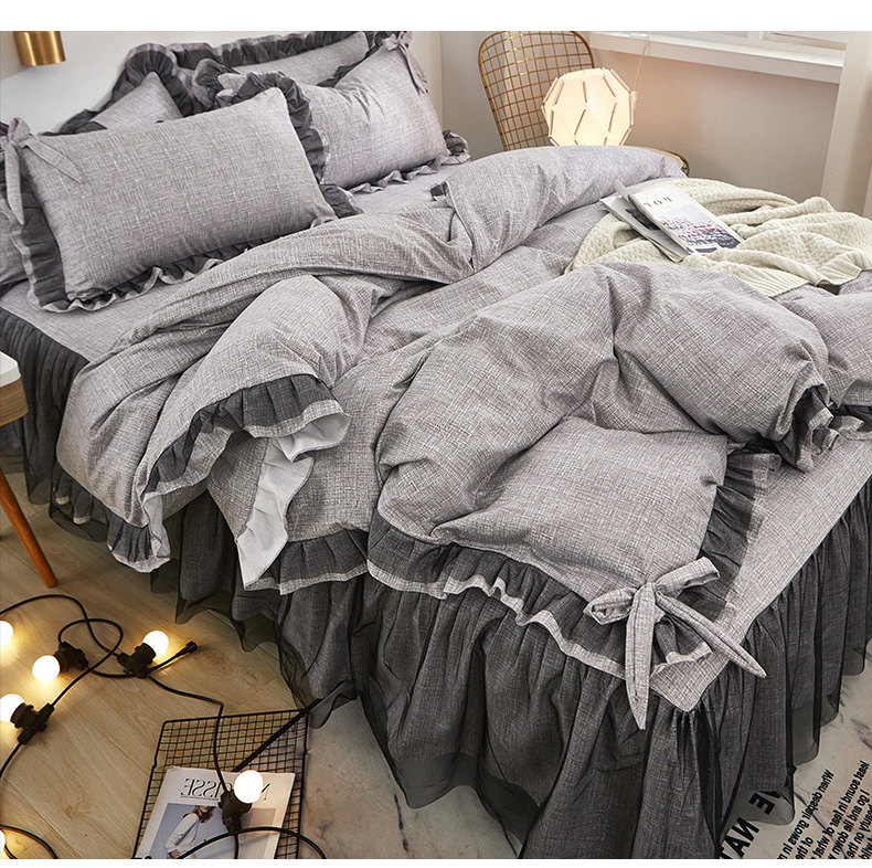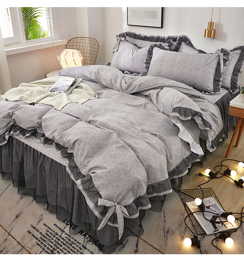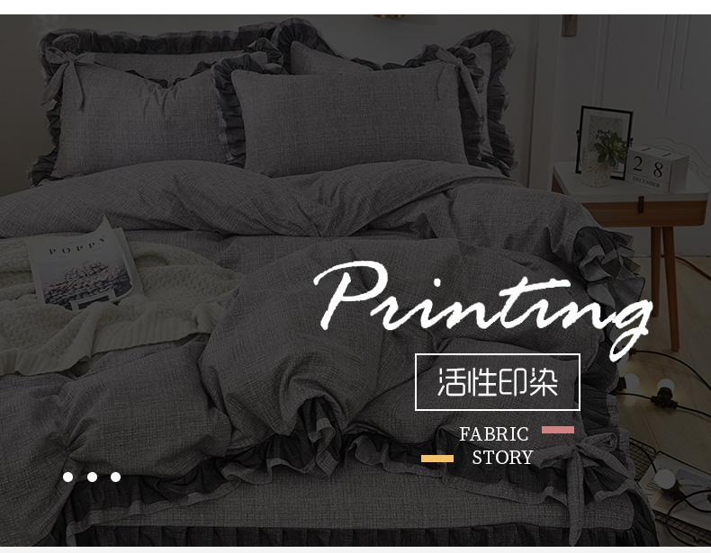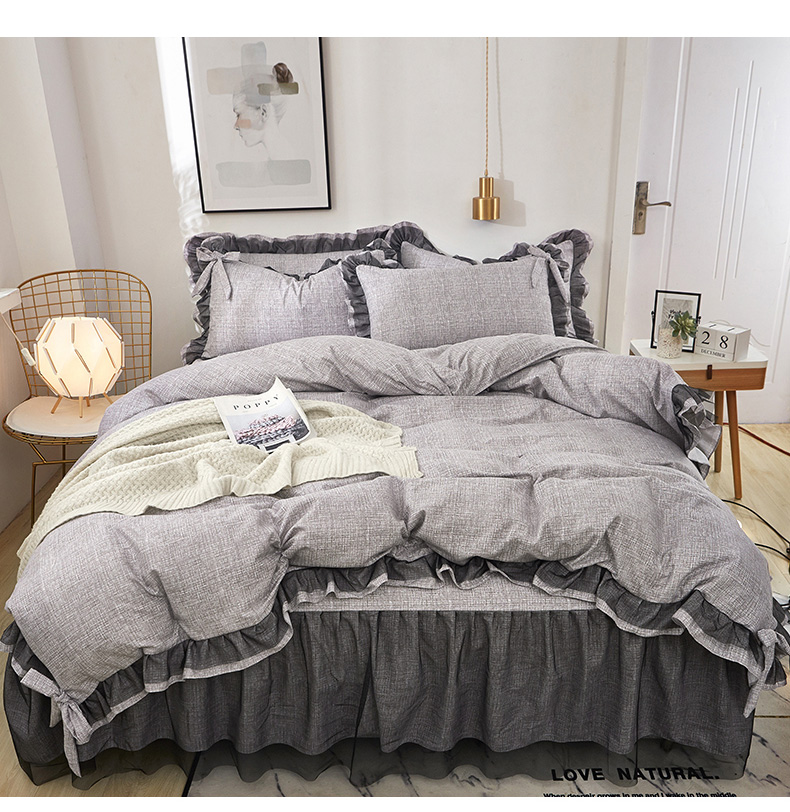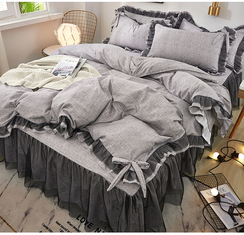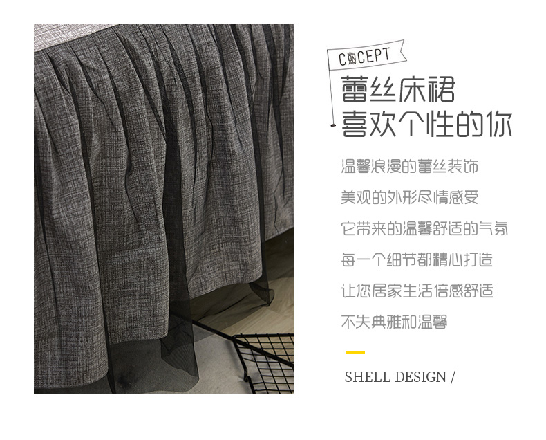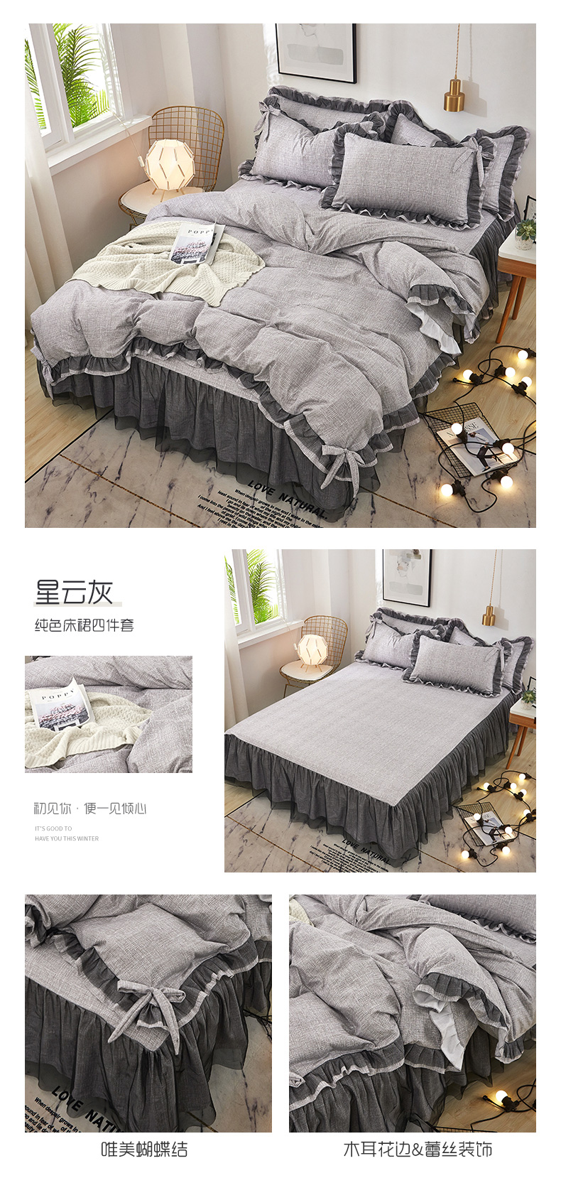商品名称:后庭寝室 2025新款纯色磨毛黑蕾丝四件套-秘密花园 秘密花园-星云灰